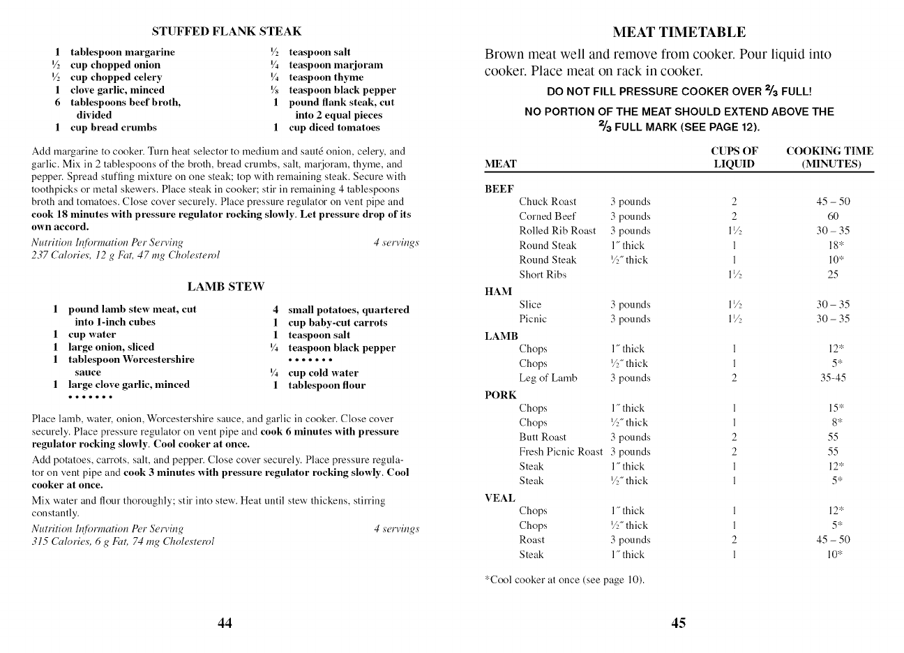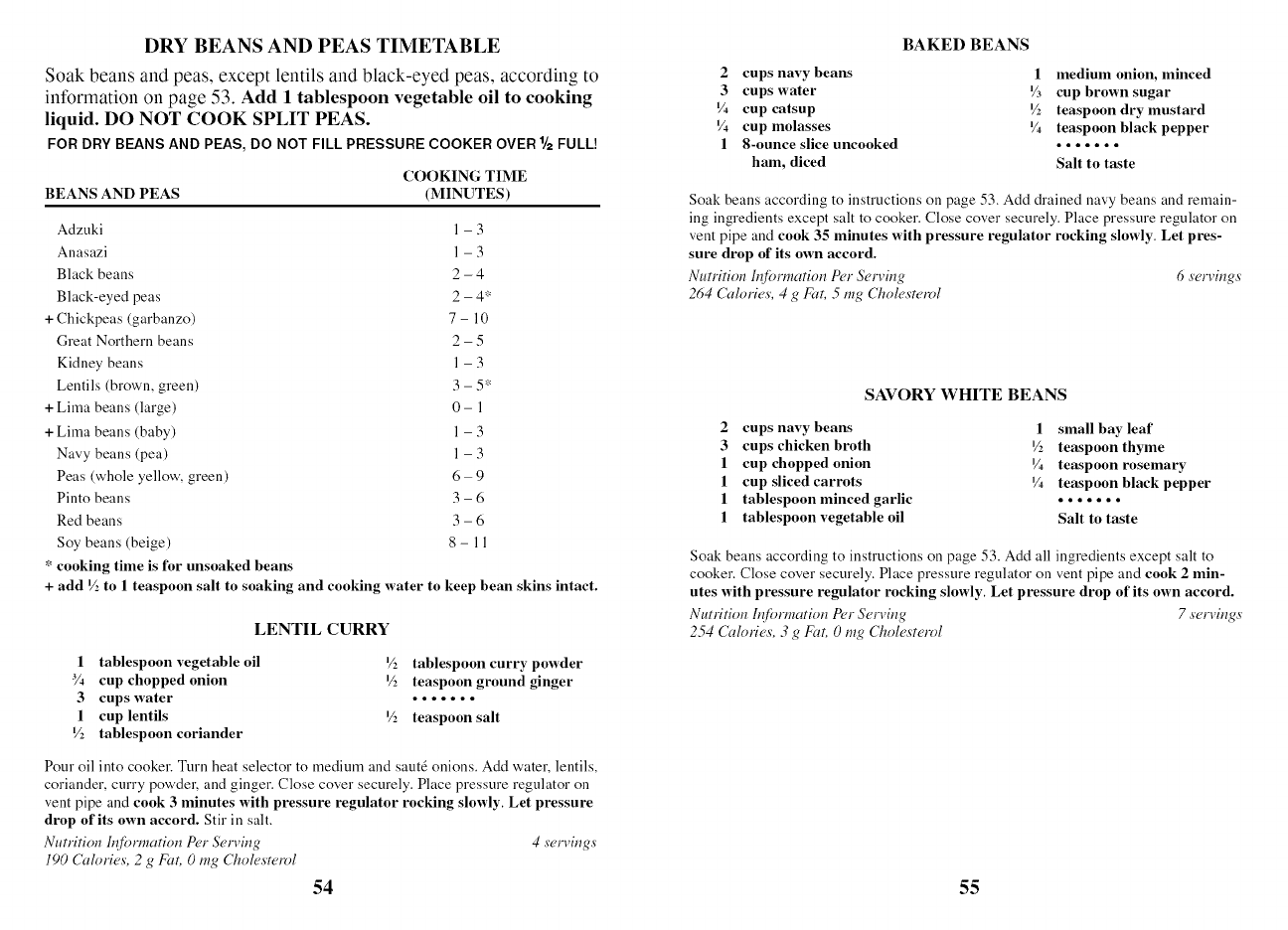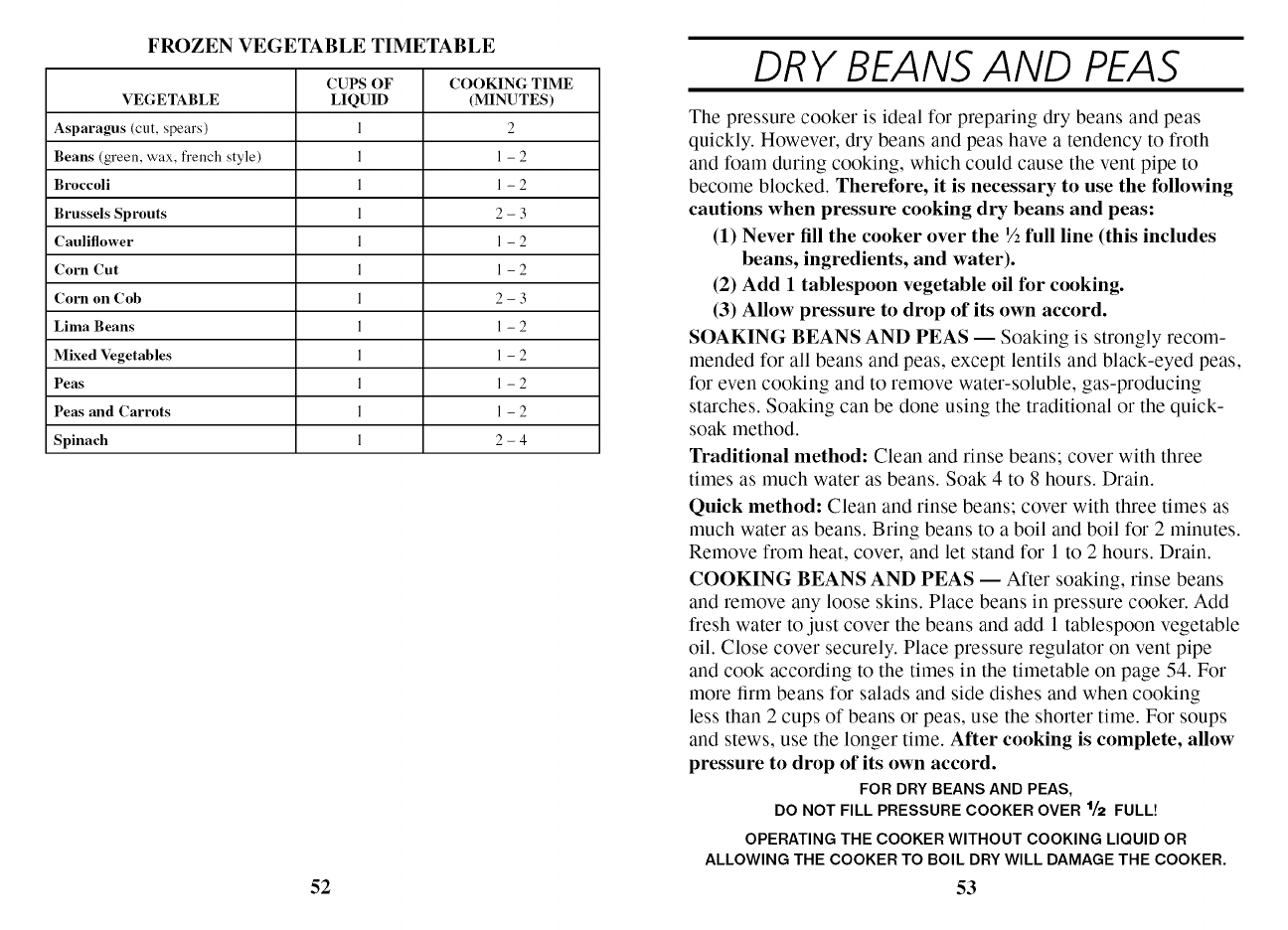 and peas which expand during cooking, do not fill cooker over _ lull.