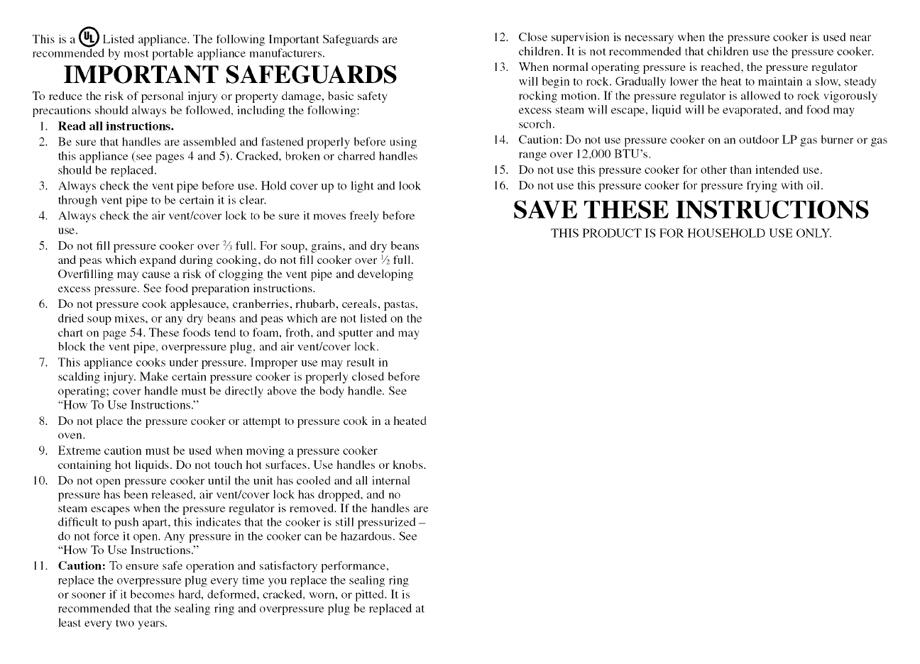 14. Caution: Do not use pressure cooker on an outdoor LP gas burner or gas