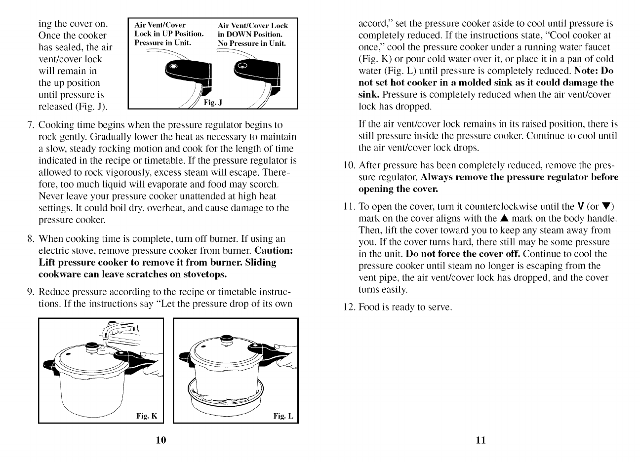 10. Do not open pressure cooker until the unit has cooled and all internal