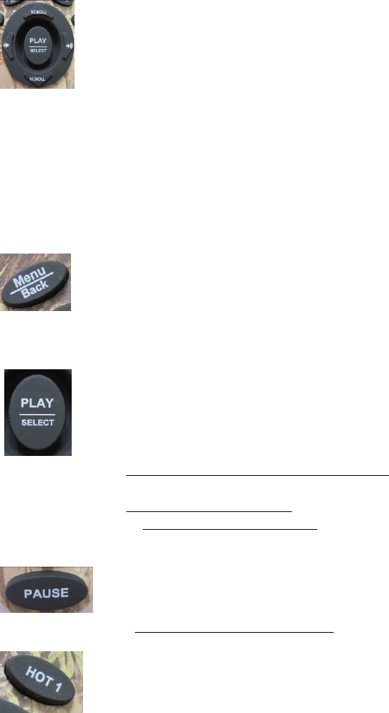 - NAVIGATE: Use to navigate thru sounds, hunts and menu options. TIP: Hold button down