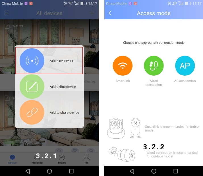 Two ways for adding device: one is via Wi-Fi, the other is via wire. Wi-Fi adding can be divided
