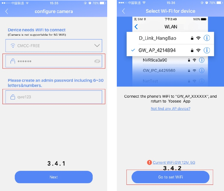 Camera is not supported for 5G Wi-Fi, please connect with 2.4G Wi-Fi.