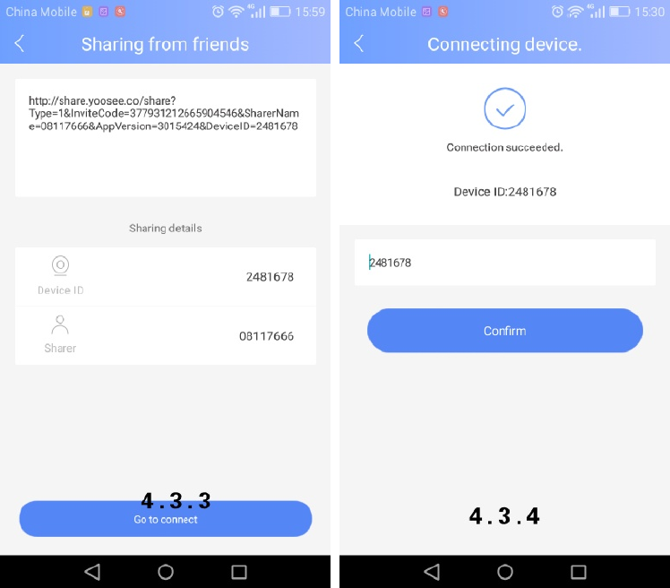 open APP→click on “add to share device”→enter into the interface of adding sharing