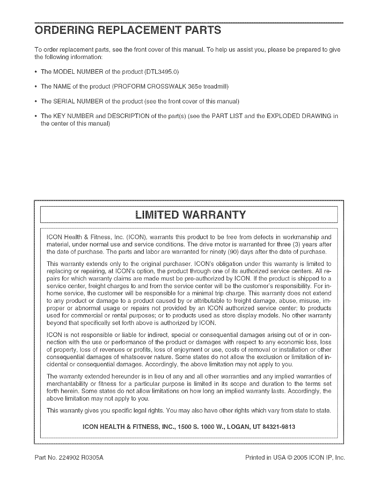 Part No. 224902 RO305A Printed in USA © 2005 iCON IP, Inc.