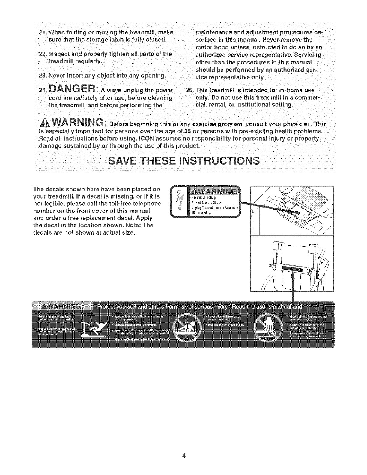 followmg important precautions and information before operating the treadmill.