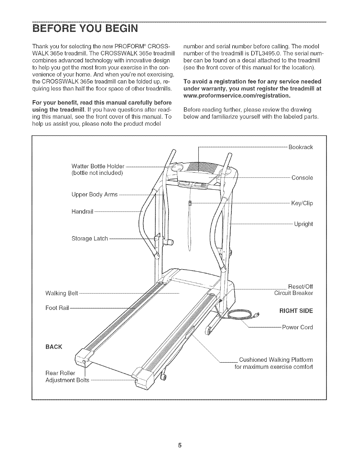 FORE YOU BEGmNon page 5 if the treadmill is
