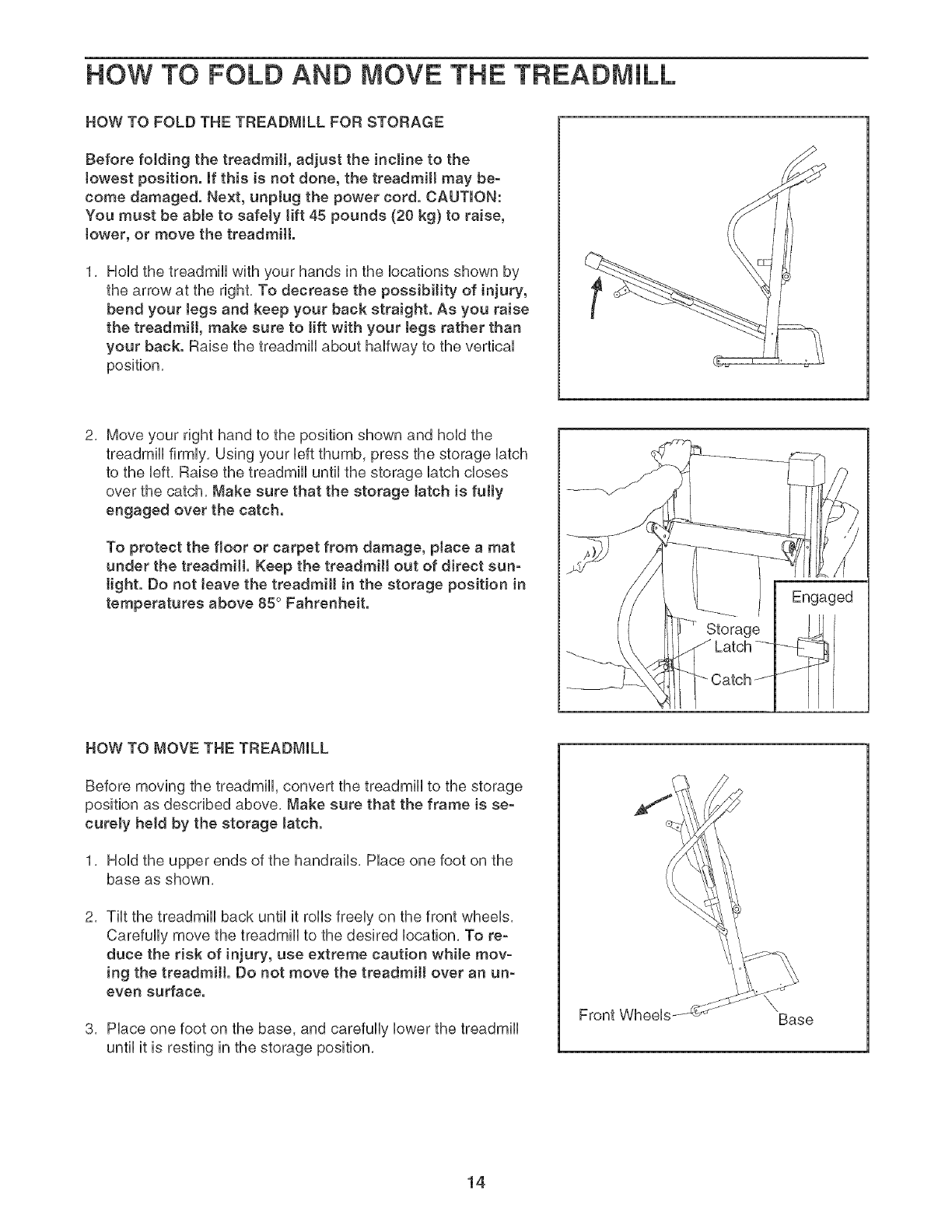 HOW TO FOLD AND MOVE THE TREADMHLL .................................................. 14