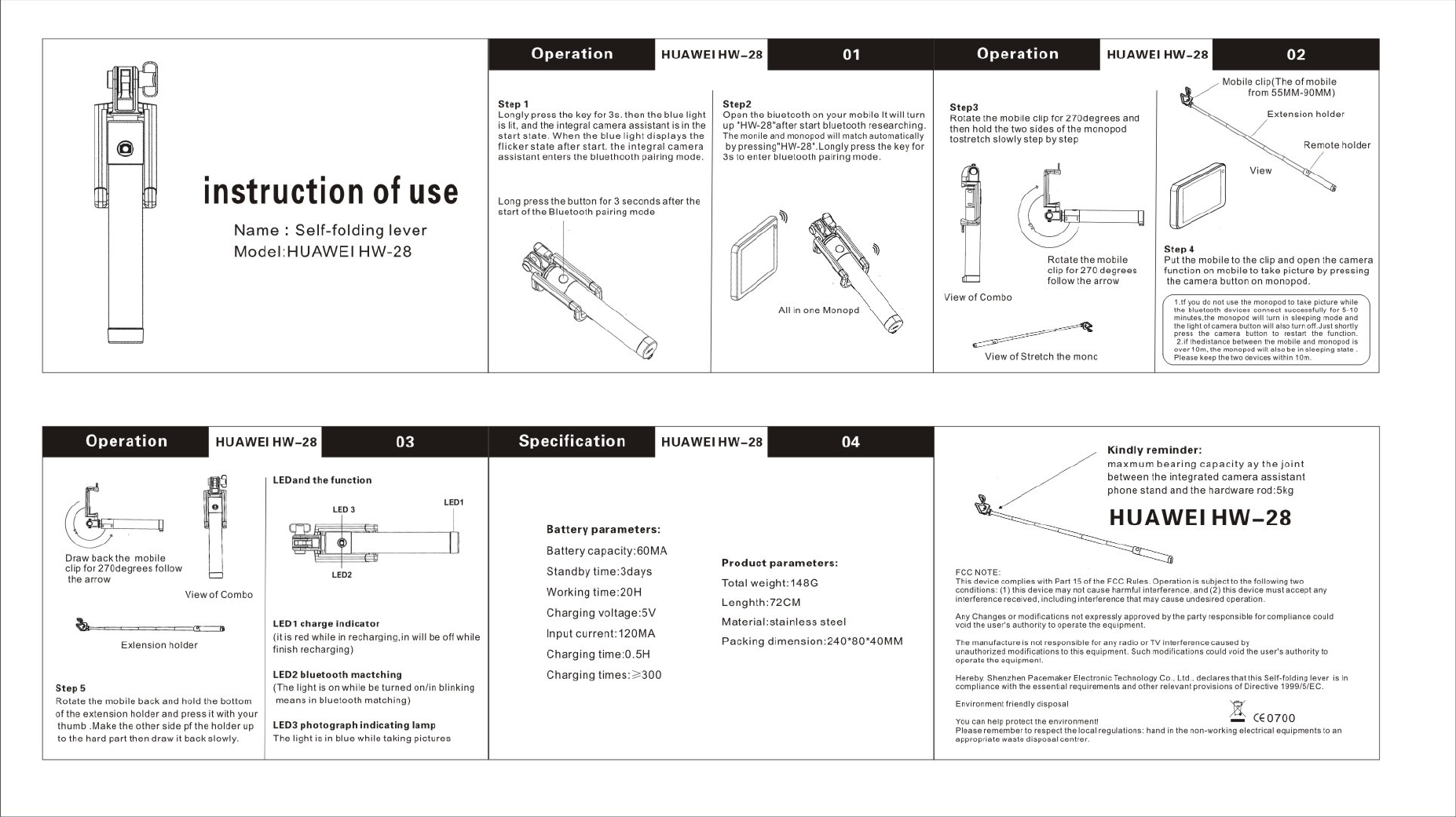 Pacemaker Electronic Technology HW-28 Self-folding lever User Manual