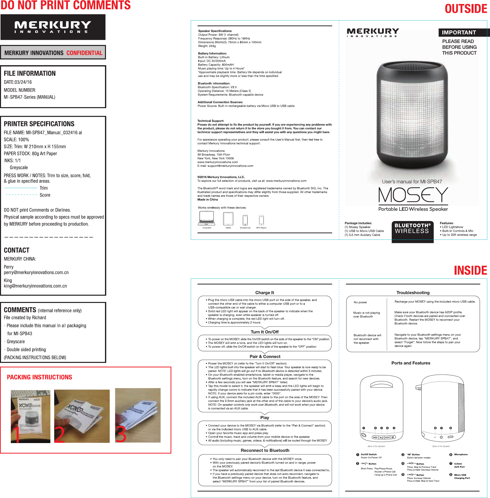 Pacemaker Electronic Technology MISPB47 Portable LED Wireless Speaker User Manual MI SPB17 Series Manual 042315