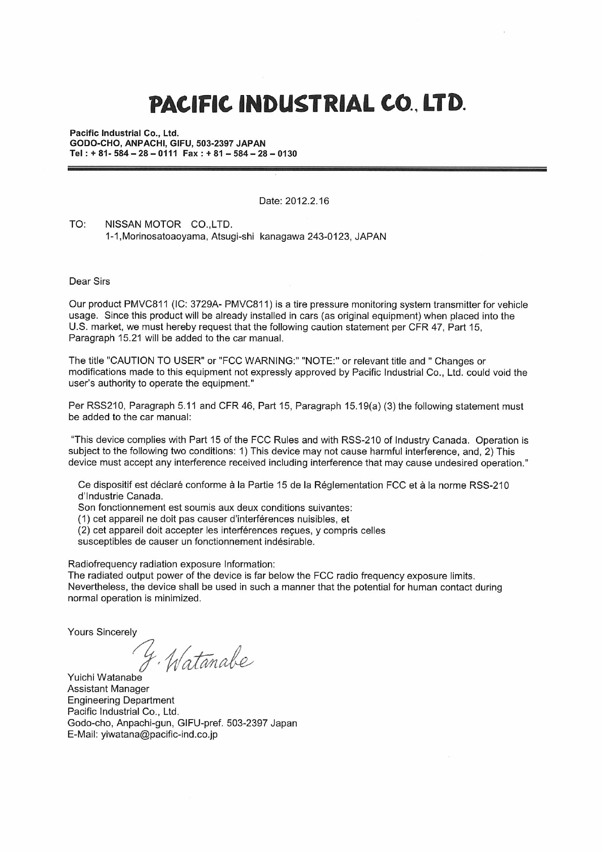 Pacific Industrial Company, LTD. TPMS Transmitter