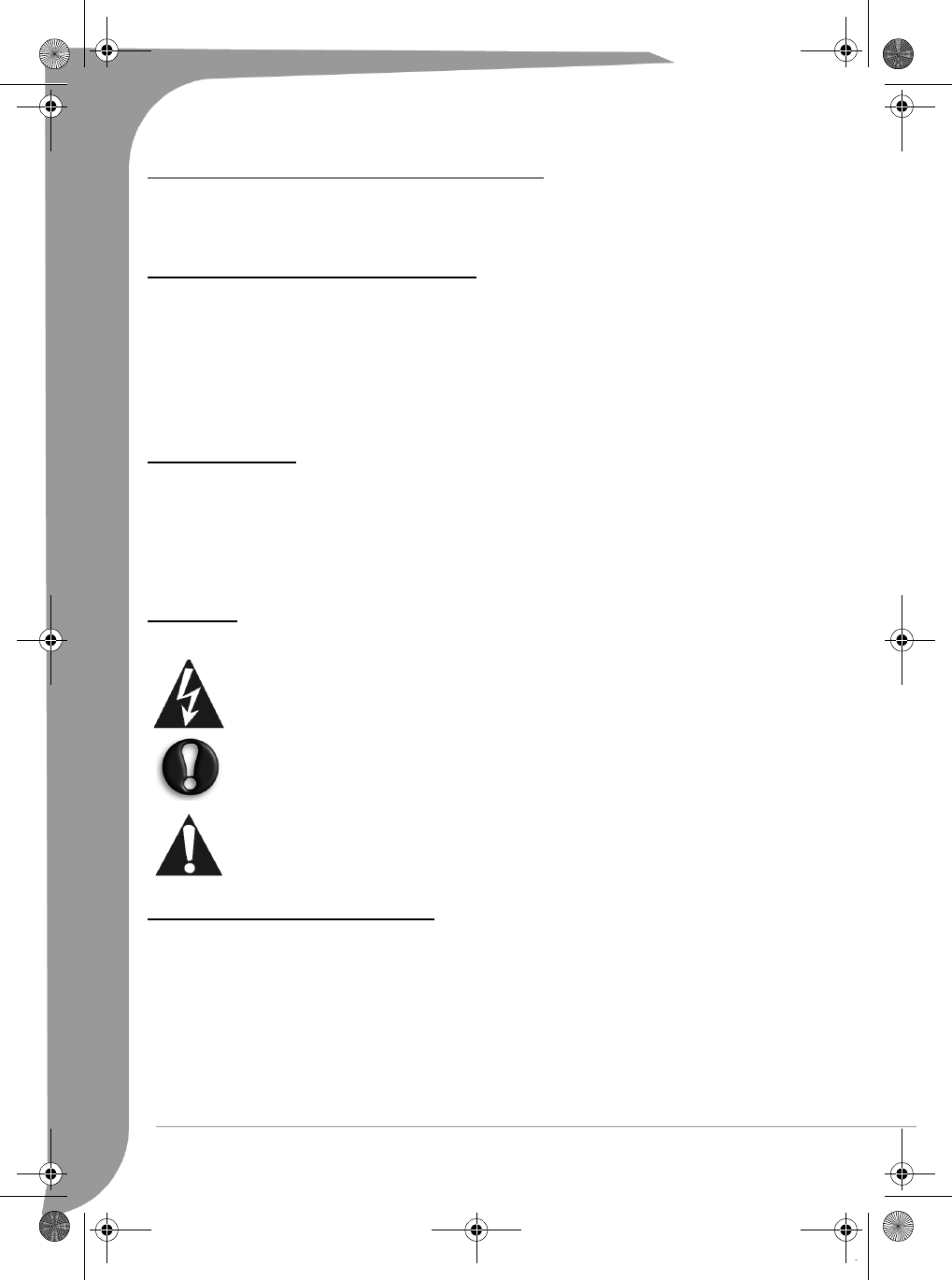 • Refer all servicing to qualified service personnel. Servicing is required when the apparatus has been damaged in