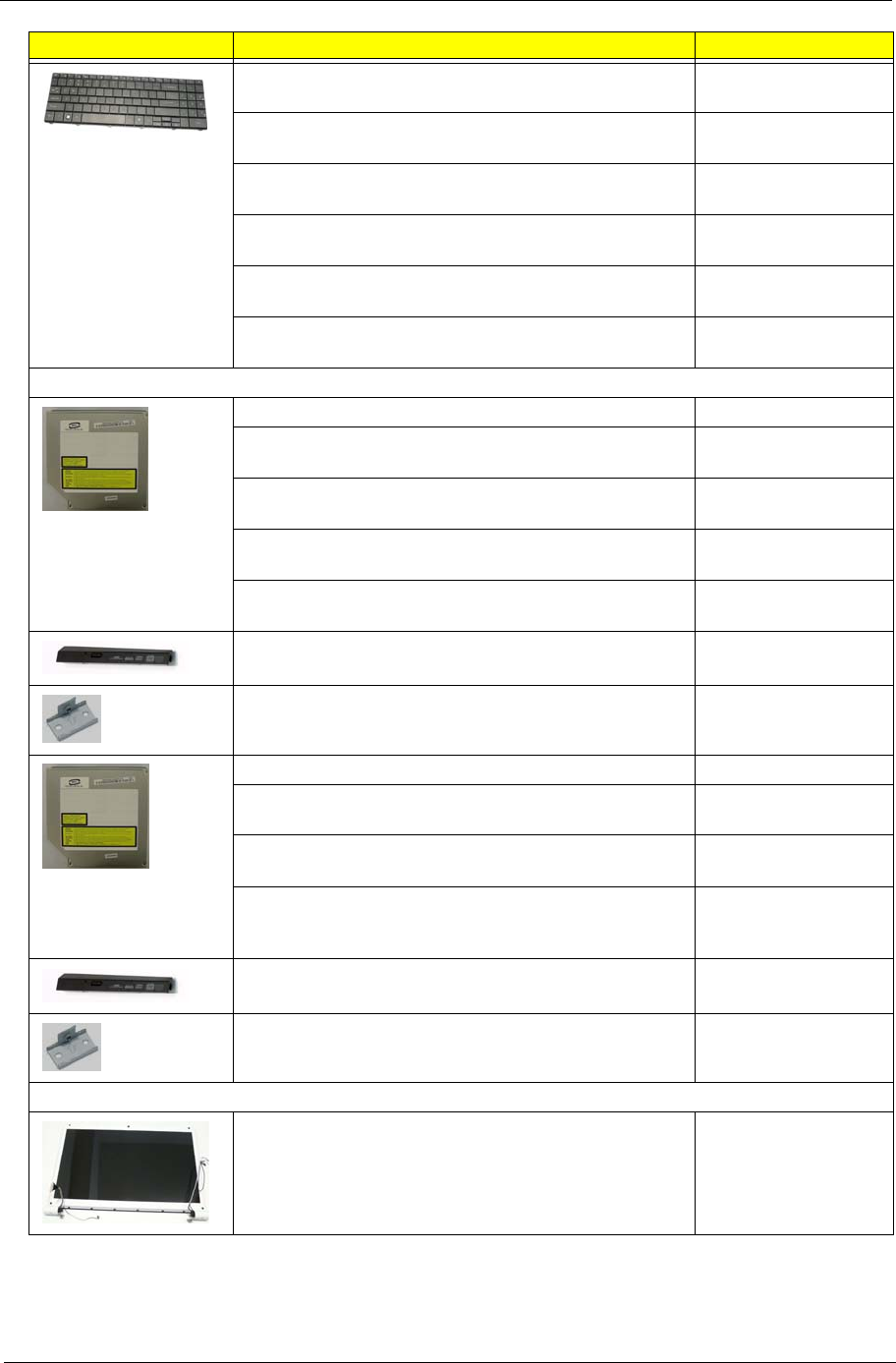 - FRU (Field Replaceable Unit) List