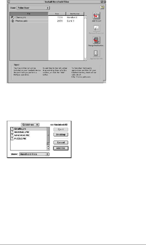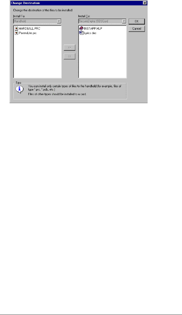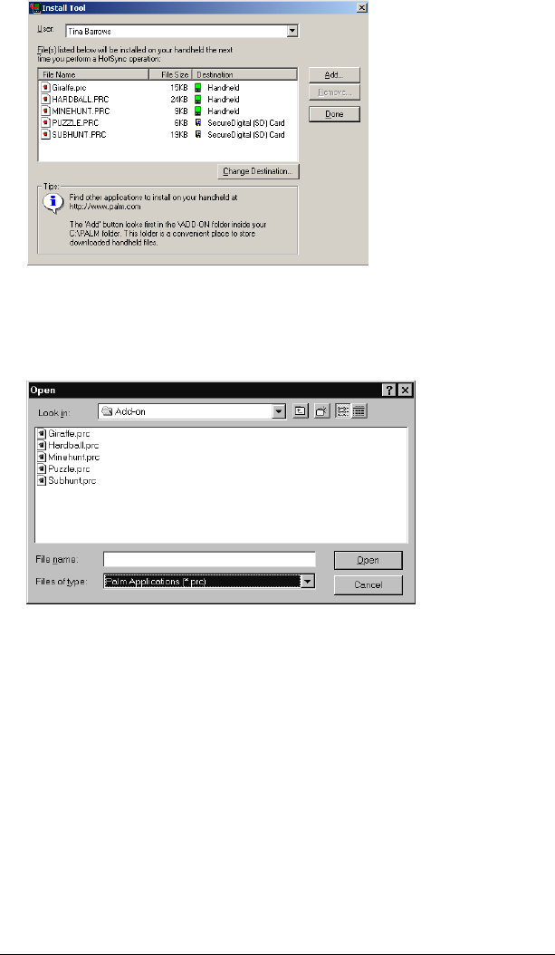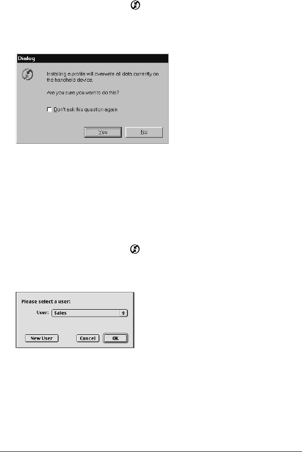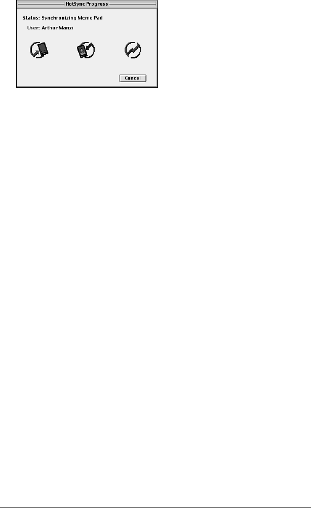 Transferring data. See HotSync