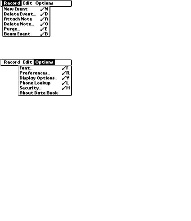 - Date Book menus, preferences, and display options