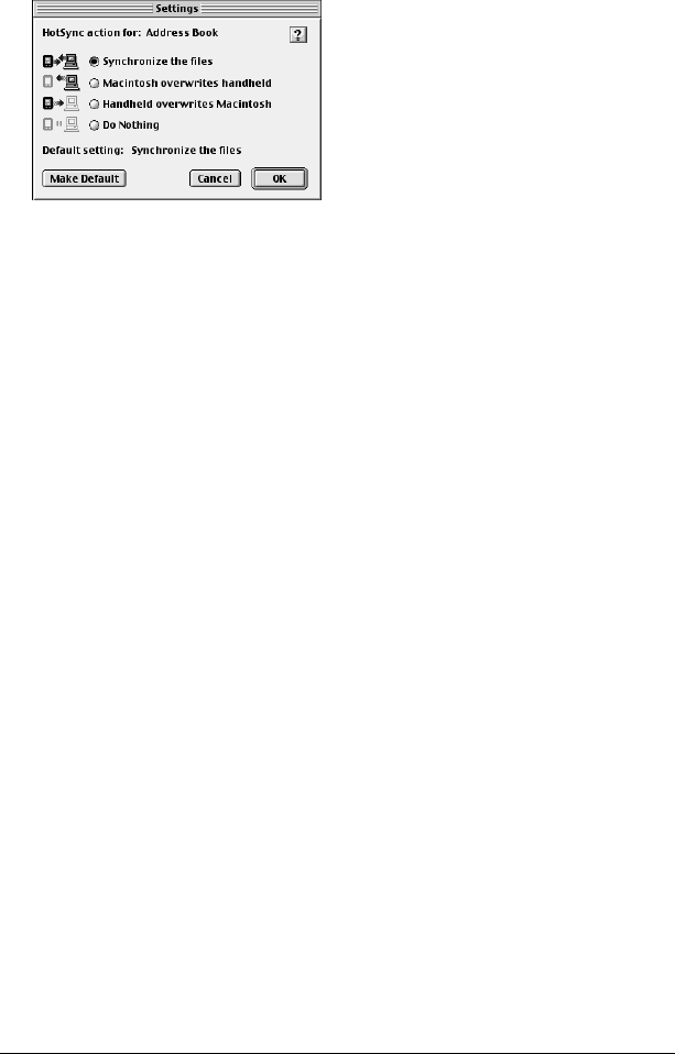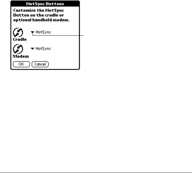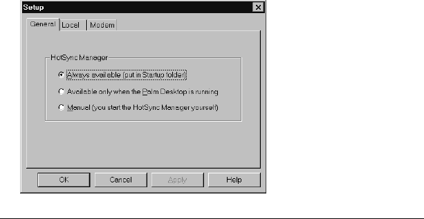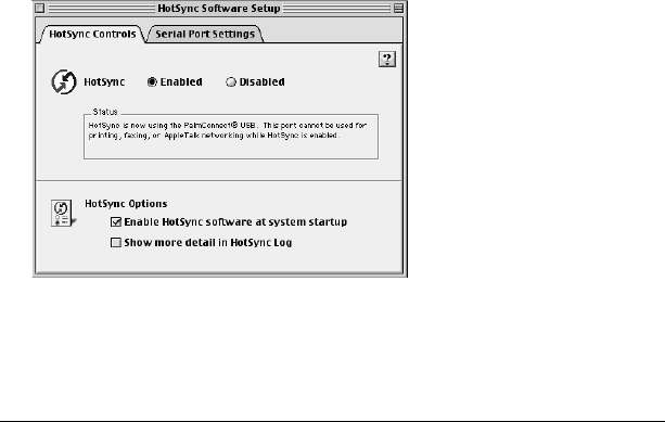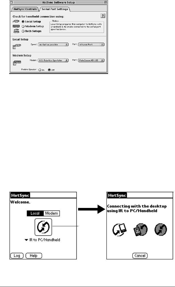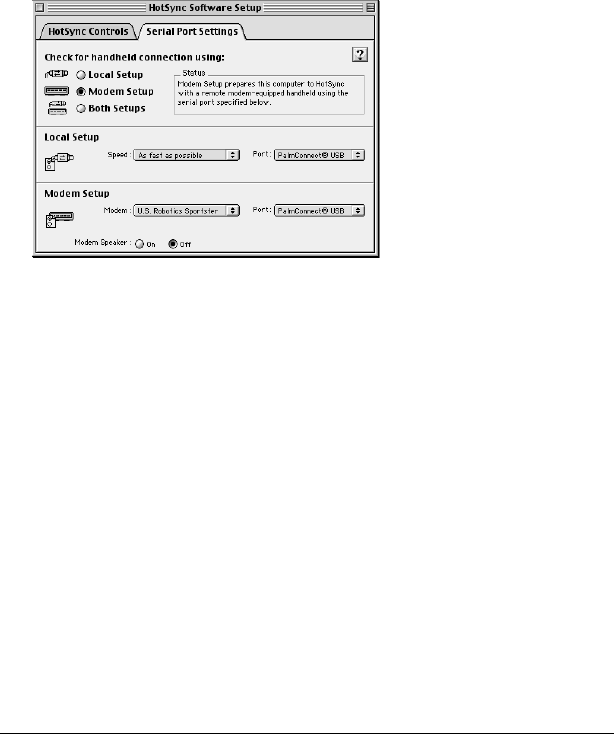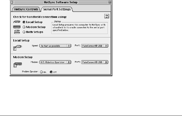 - Selecting HotSync setup options
