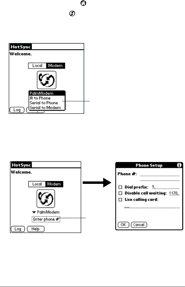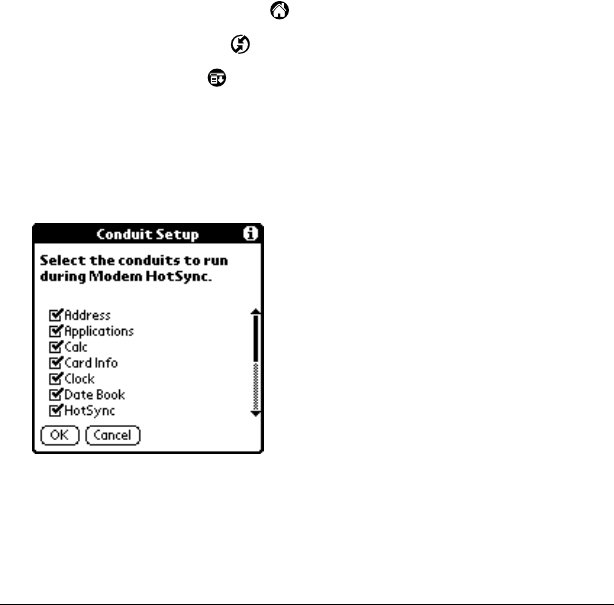 - Conducting a HotSync operation via modem