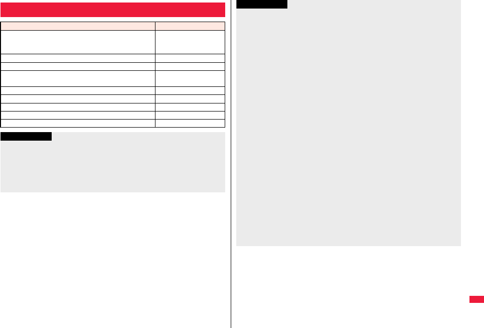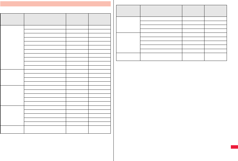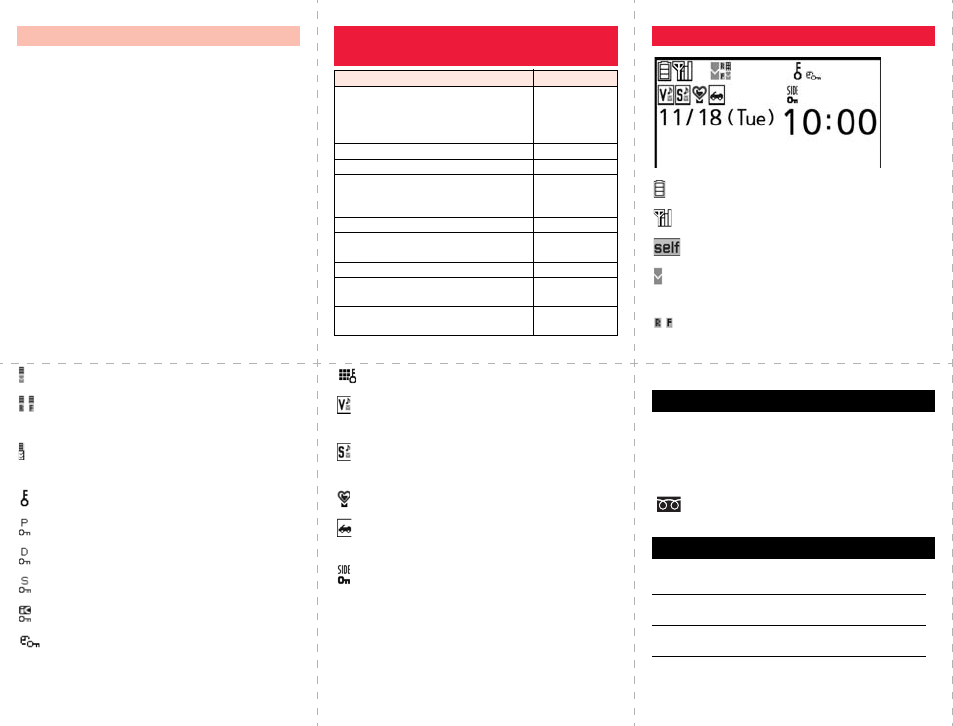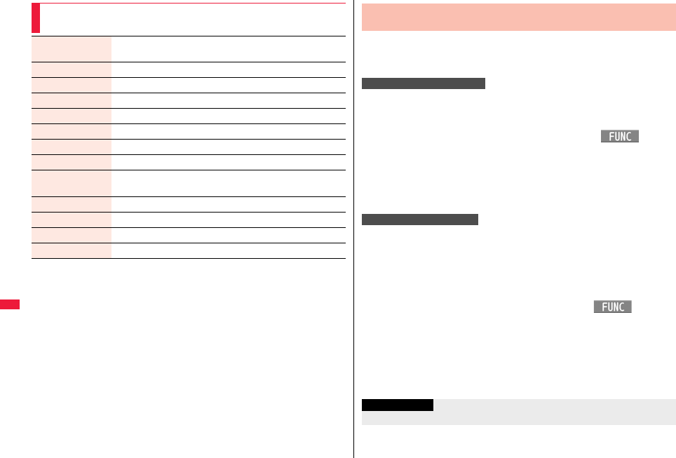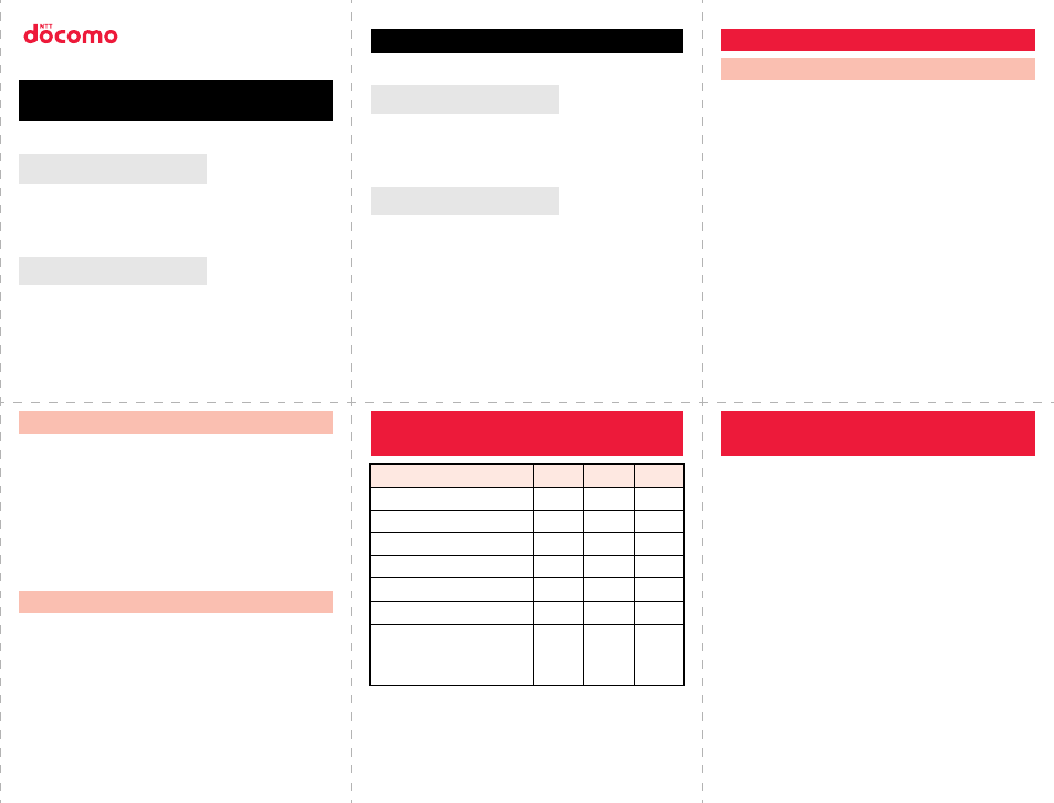 the table, or for details, refer to the DOCOMO