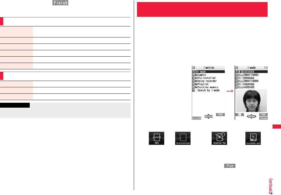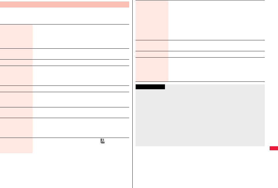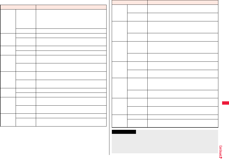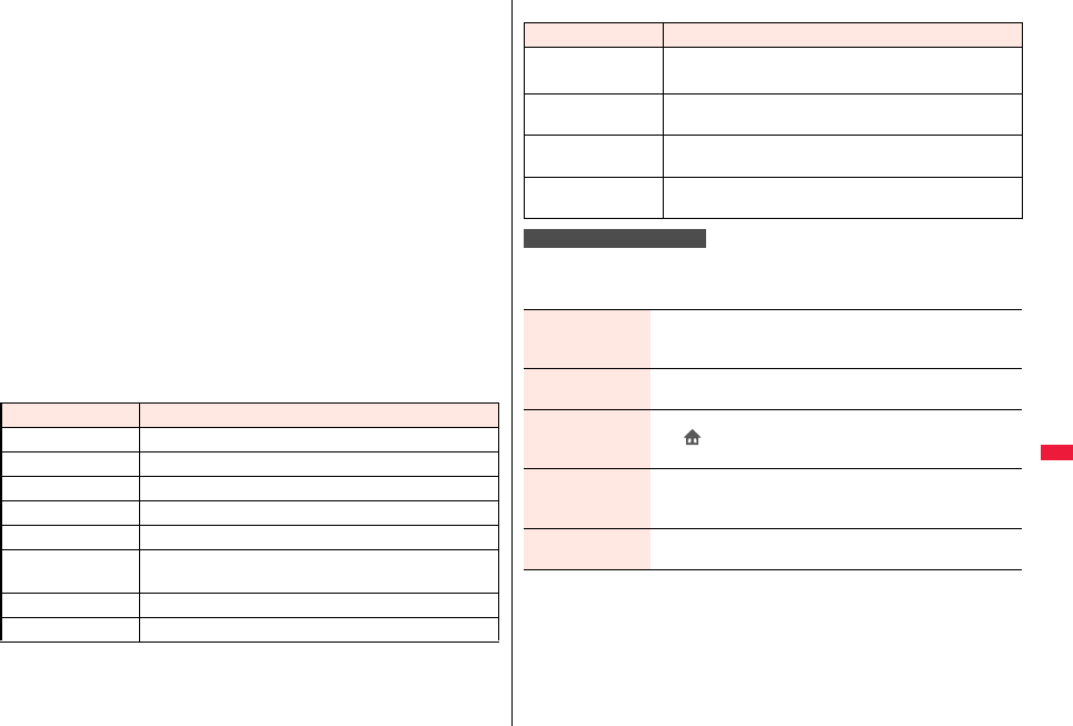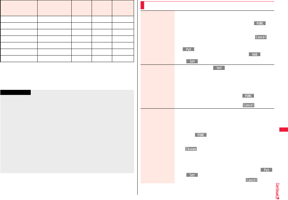 the table, or for details, refer to the DOCOMO