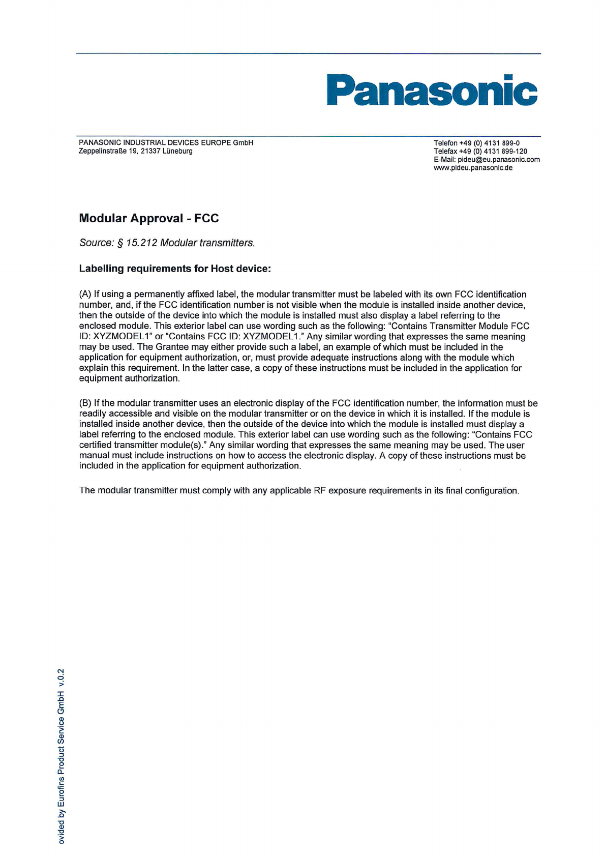 Panasonic Industrial Devices Europe GmbH Bluetooth Smart Module UserManStat