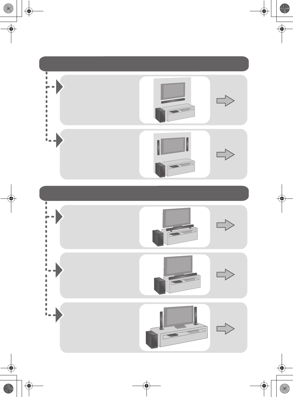 ≥Place the speaker that is connected with the speaker cable with a red connector on the observers’ right, and connect with