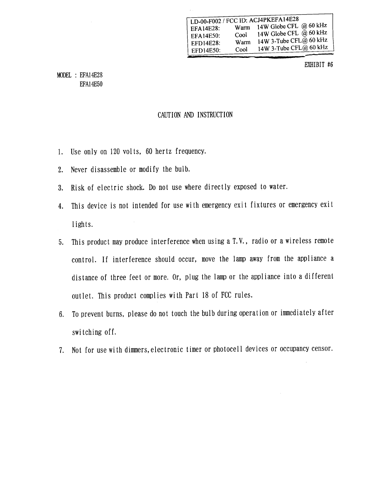 Panasonic of North America 4PKEFA14E28 Electronic Ballast for Compact Fluorescent Lamp User Manual