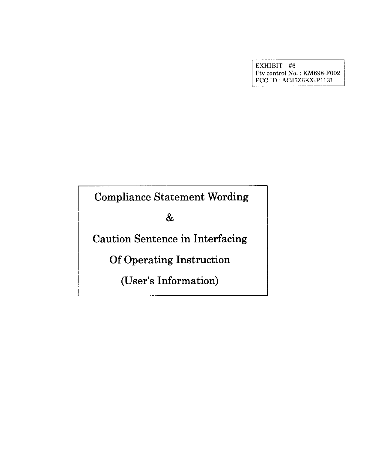 Panasonic of North America 5Z6KX-P1131 User Manual 69406
