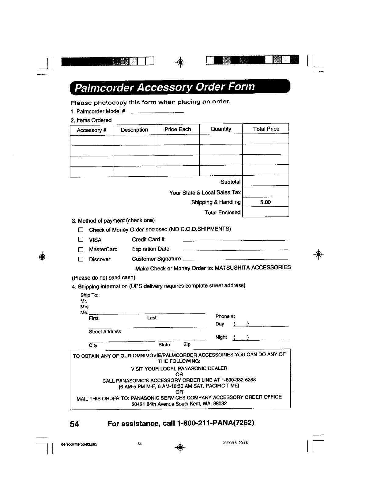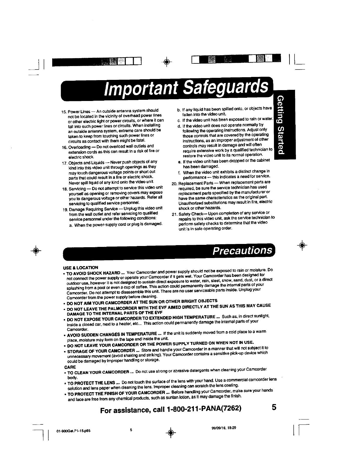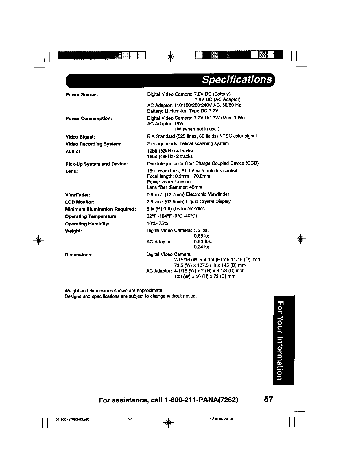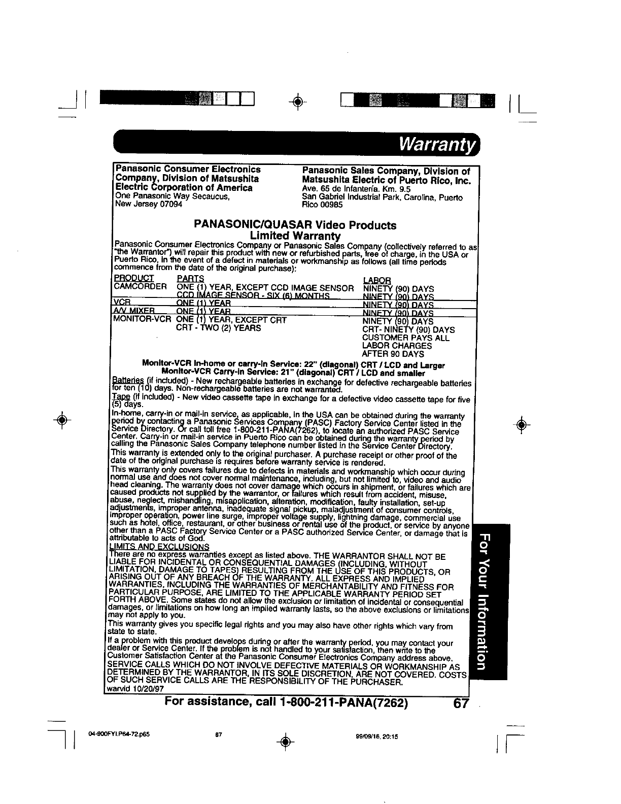 Panasonic of North America 927124K Video Camera User Manual 64818