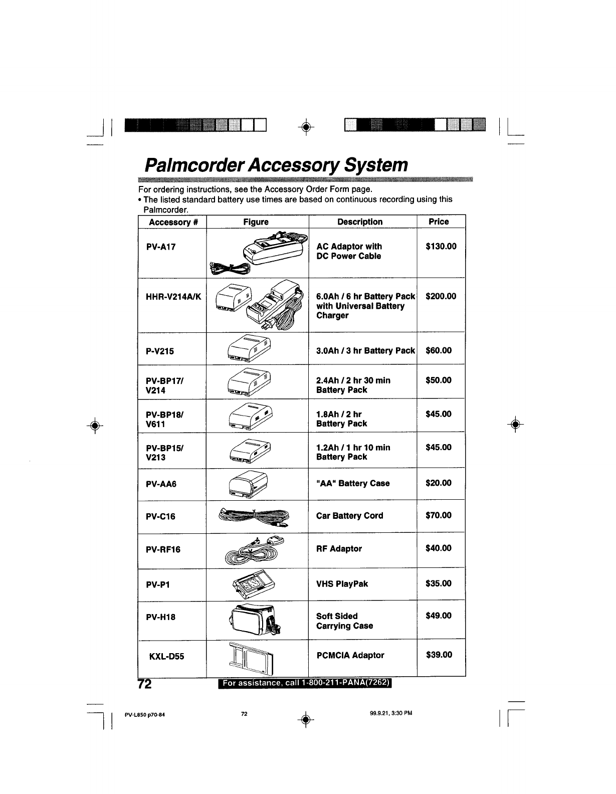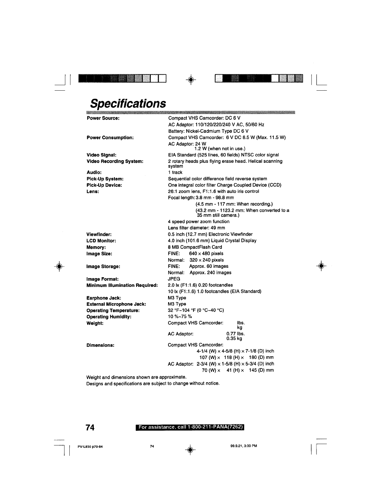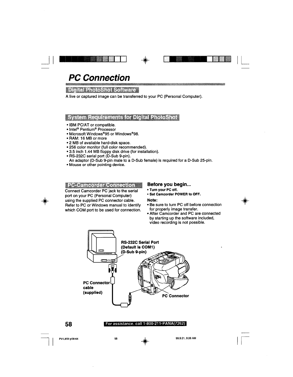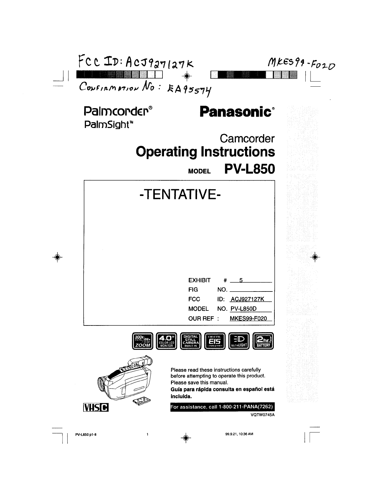 Panasonic of North America 927127K Camcorder With PC Interface User Manual