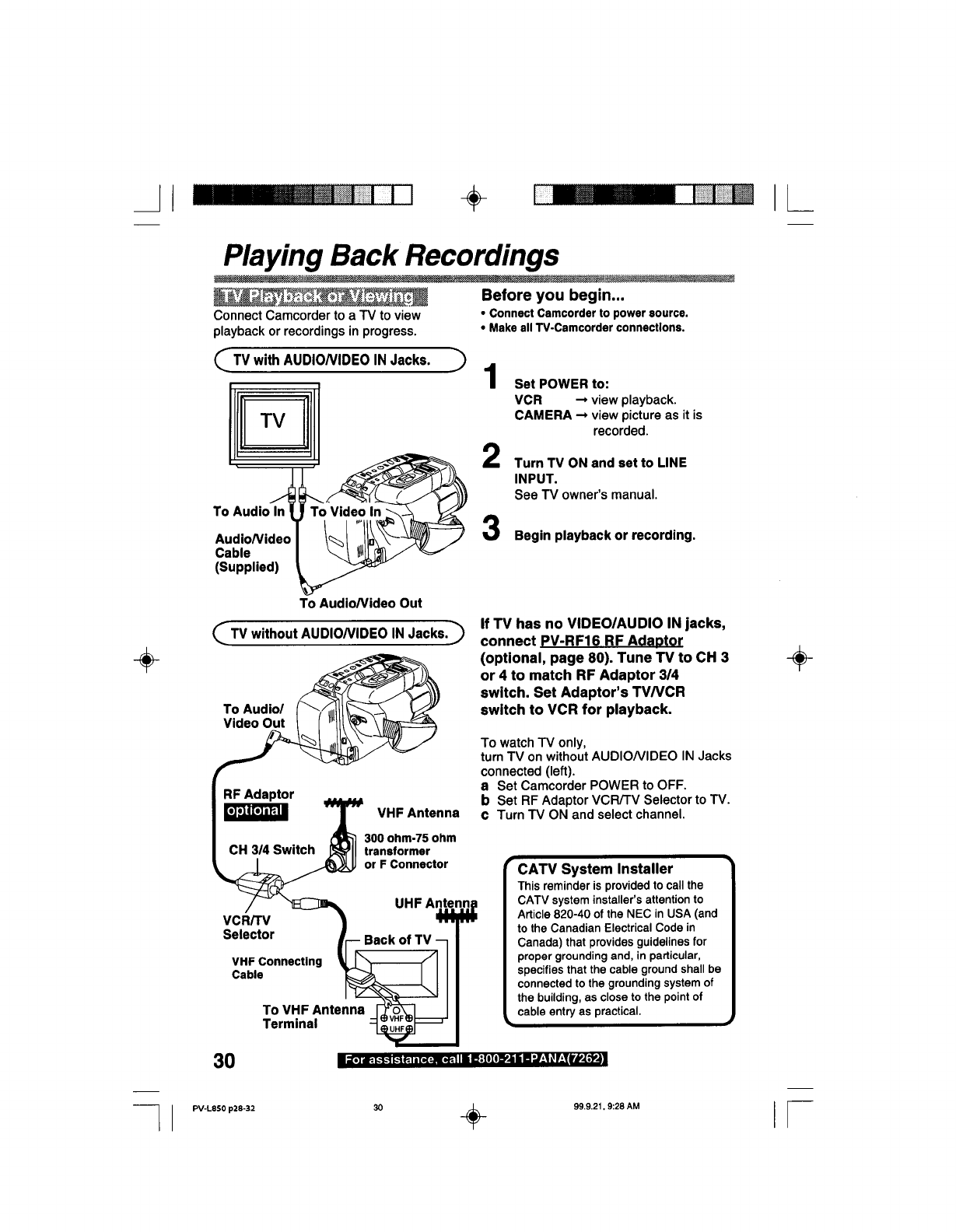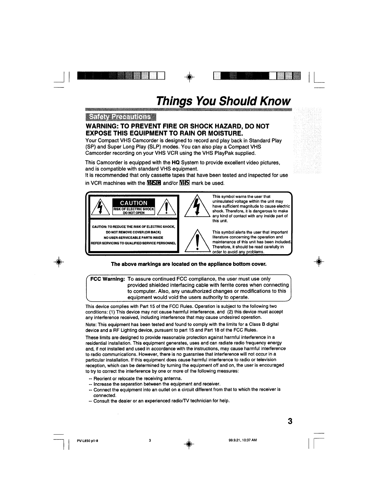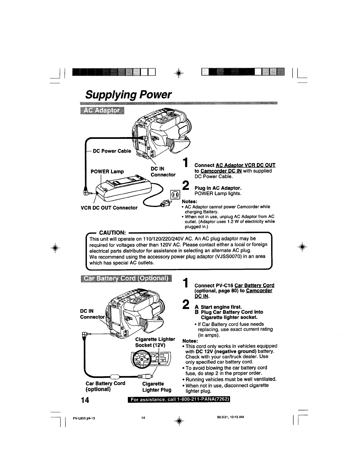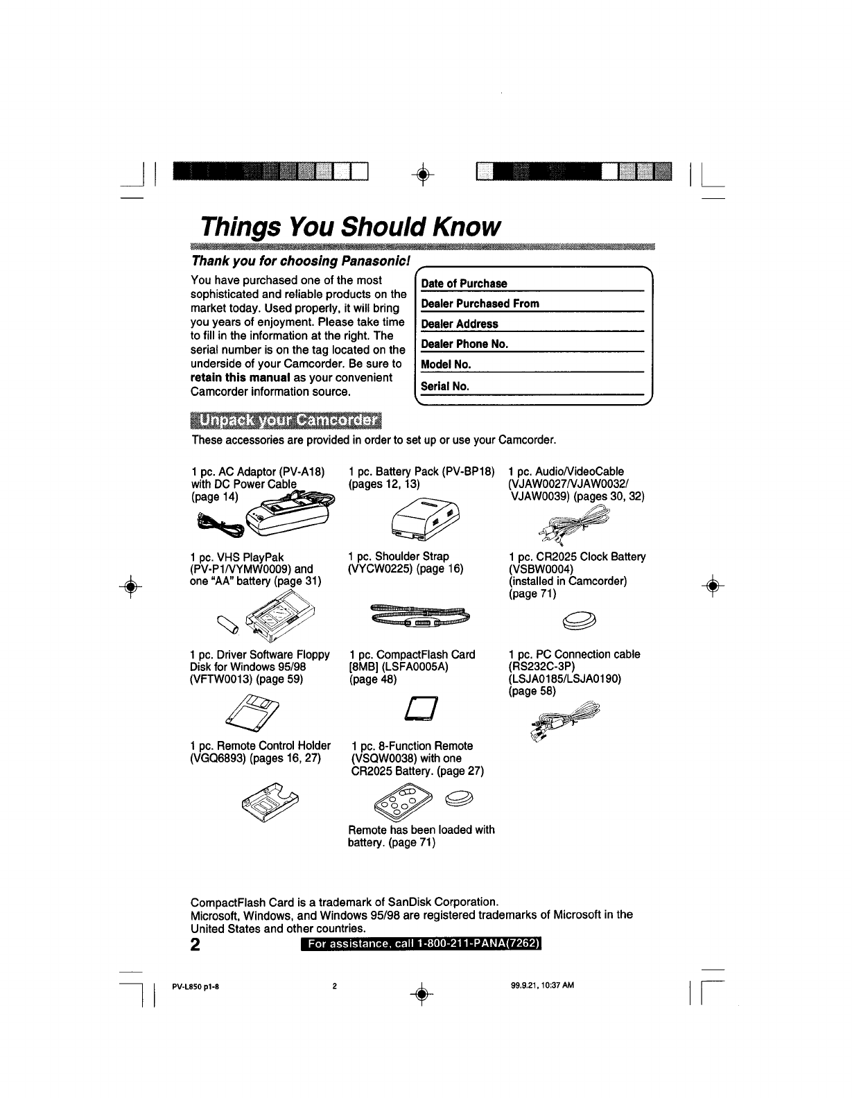 Panasonic of North America 927127K Camcorder With PC Interface User Manual