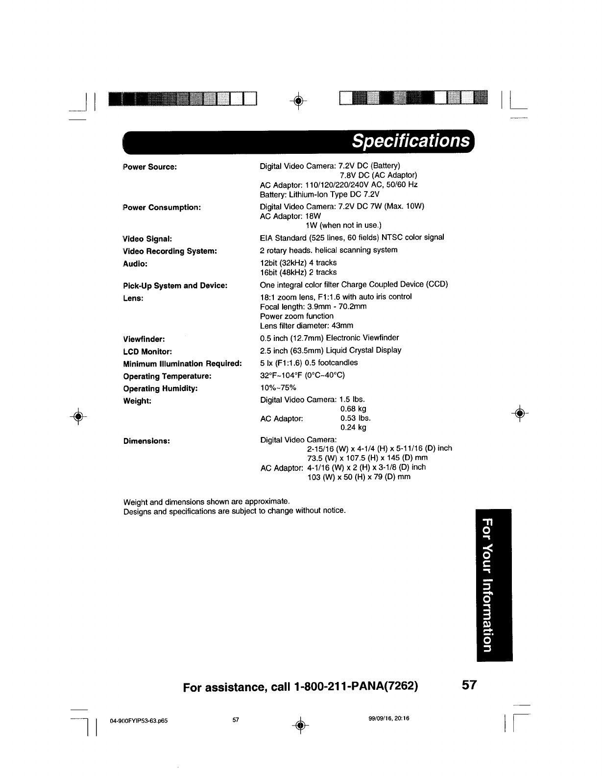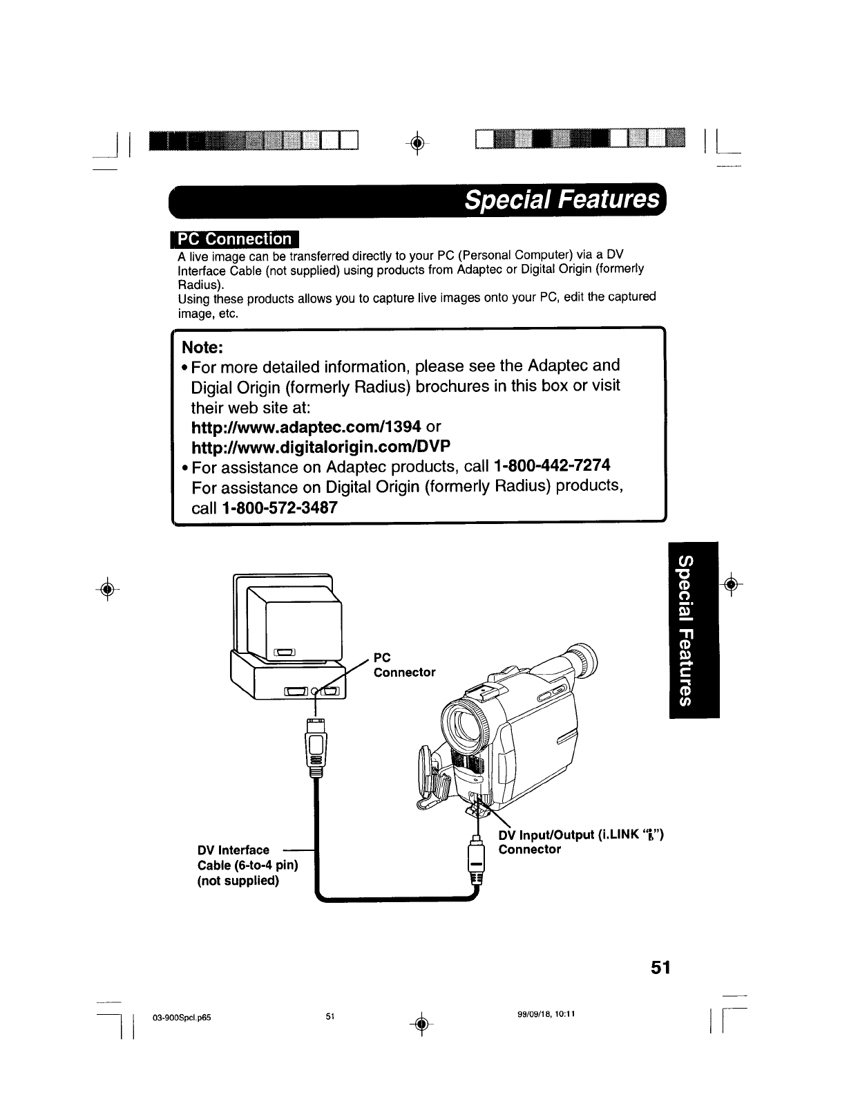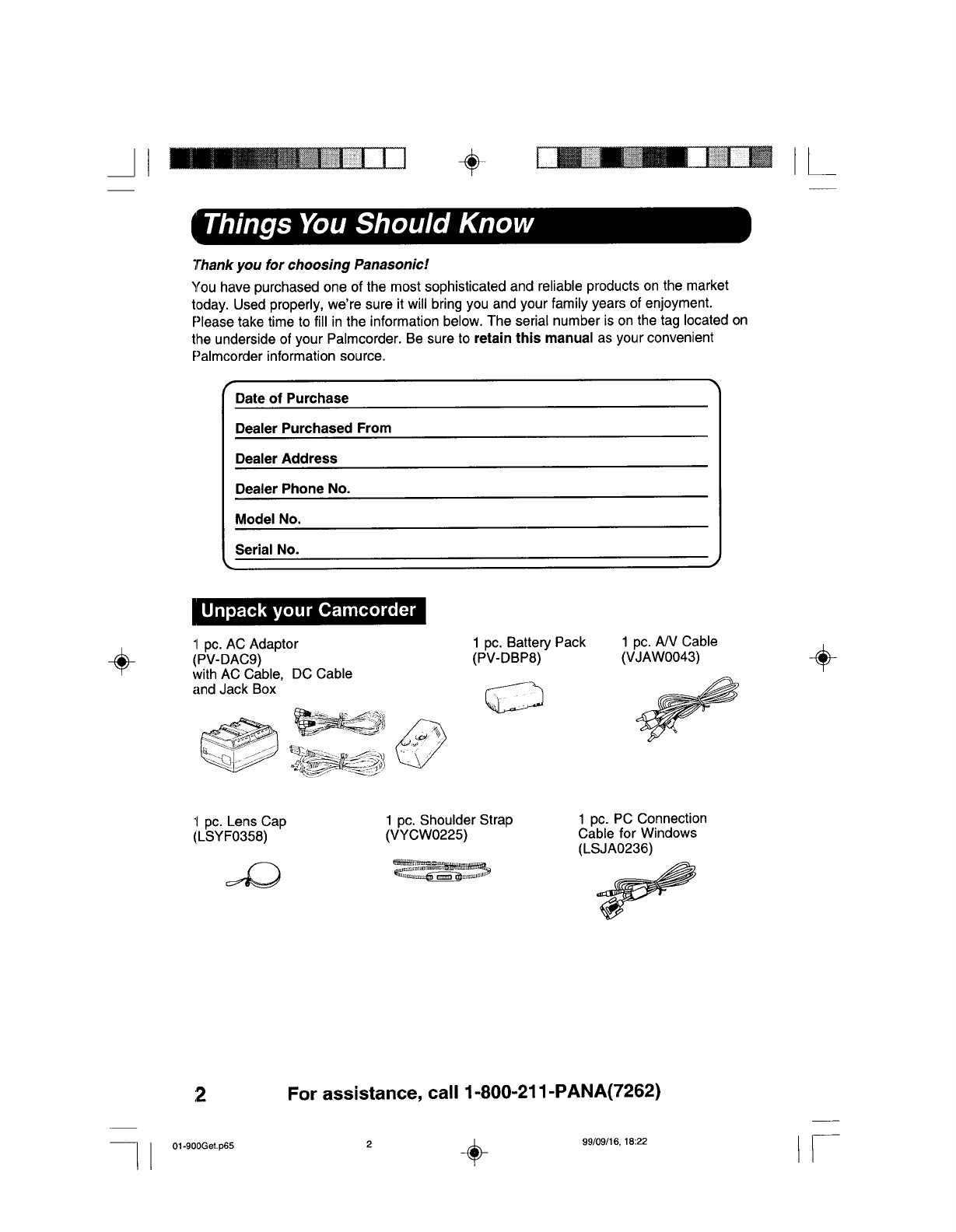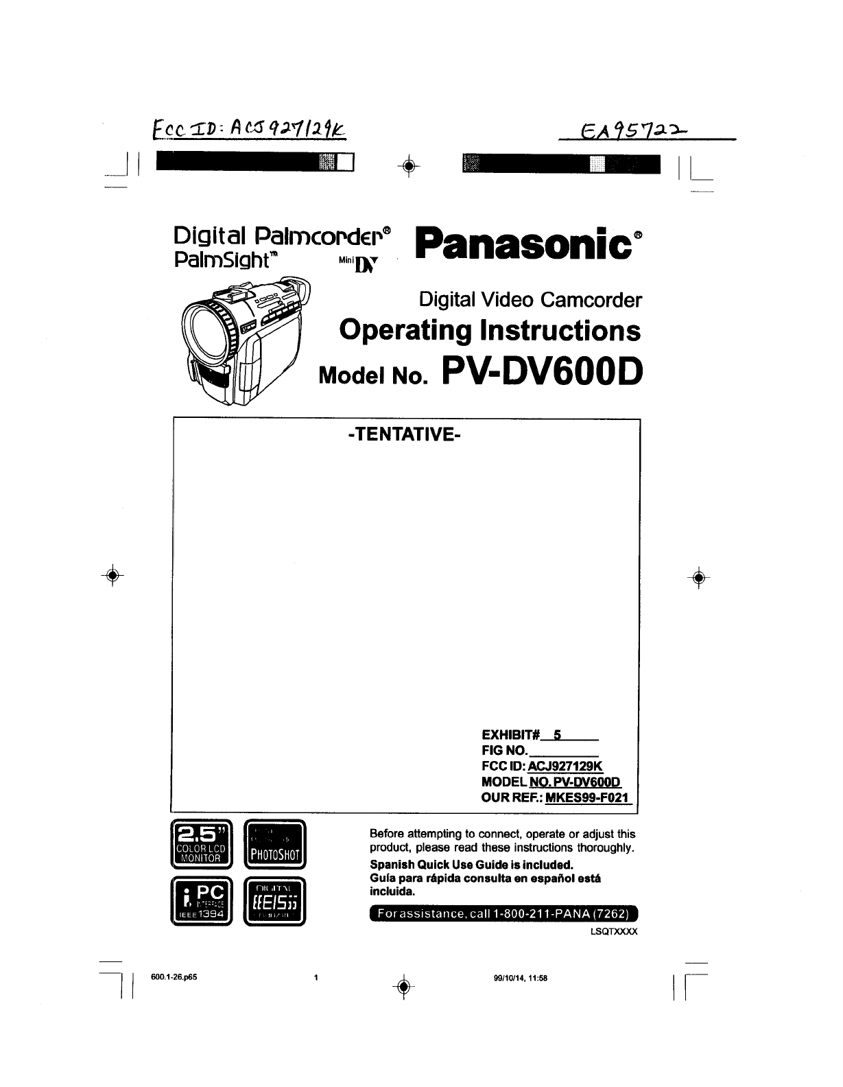 Panasonic of North America 927129K Digital Video Camera With PC Interface User Manual resent