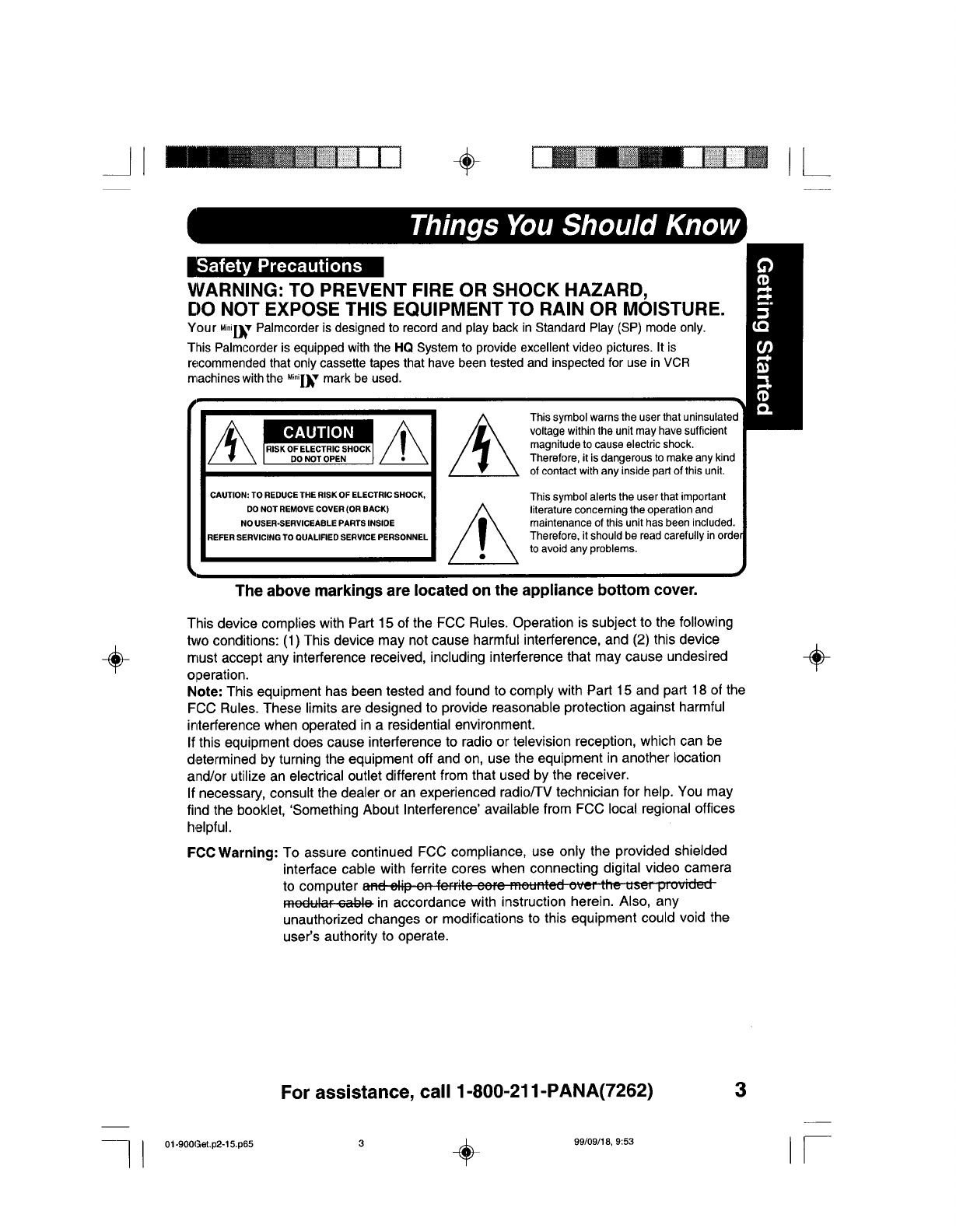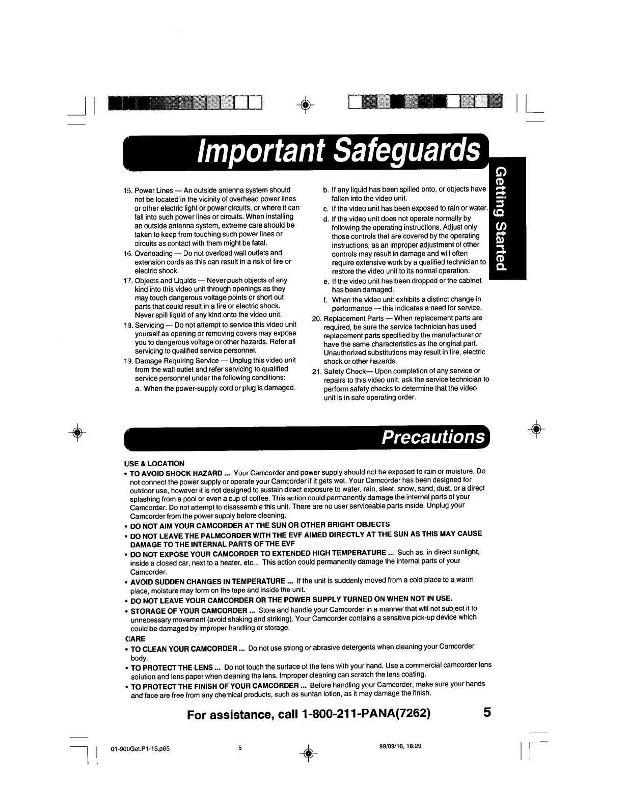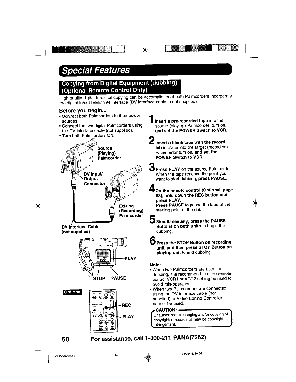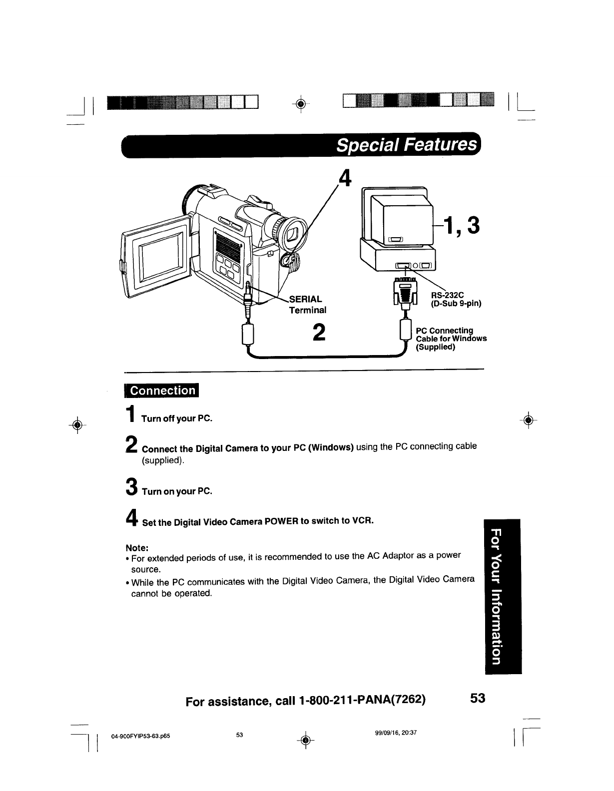 Panasonic of North America 927129K Digital Video Camera With PC Interface User Manual resent