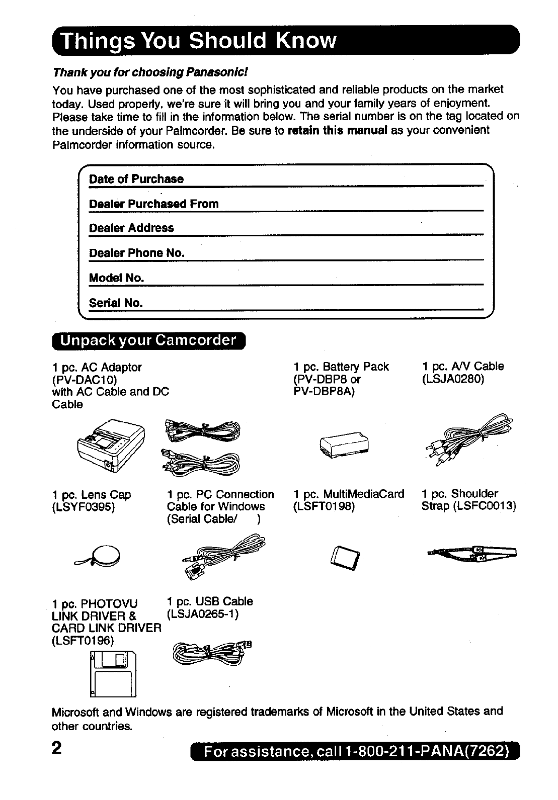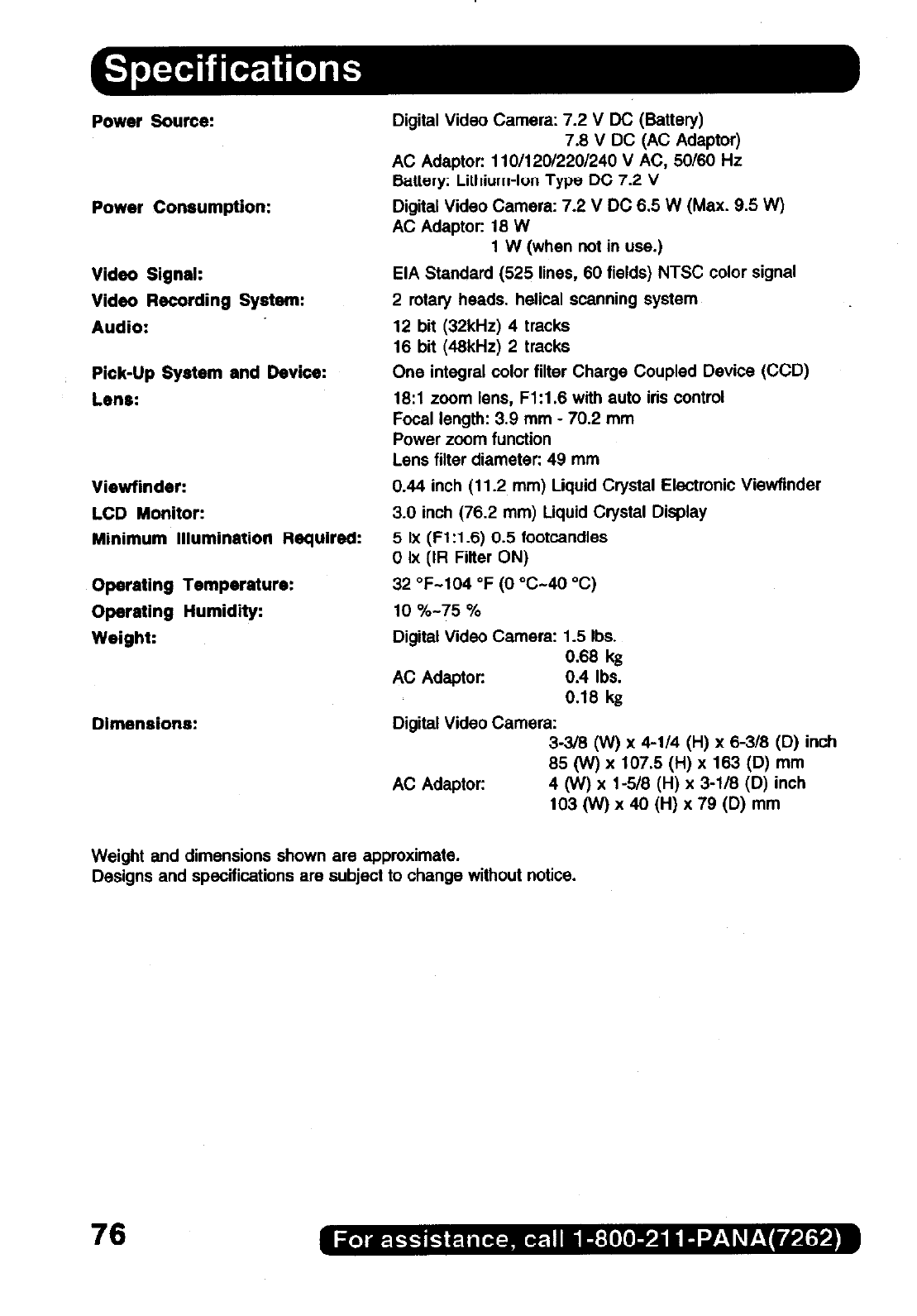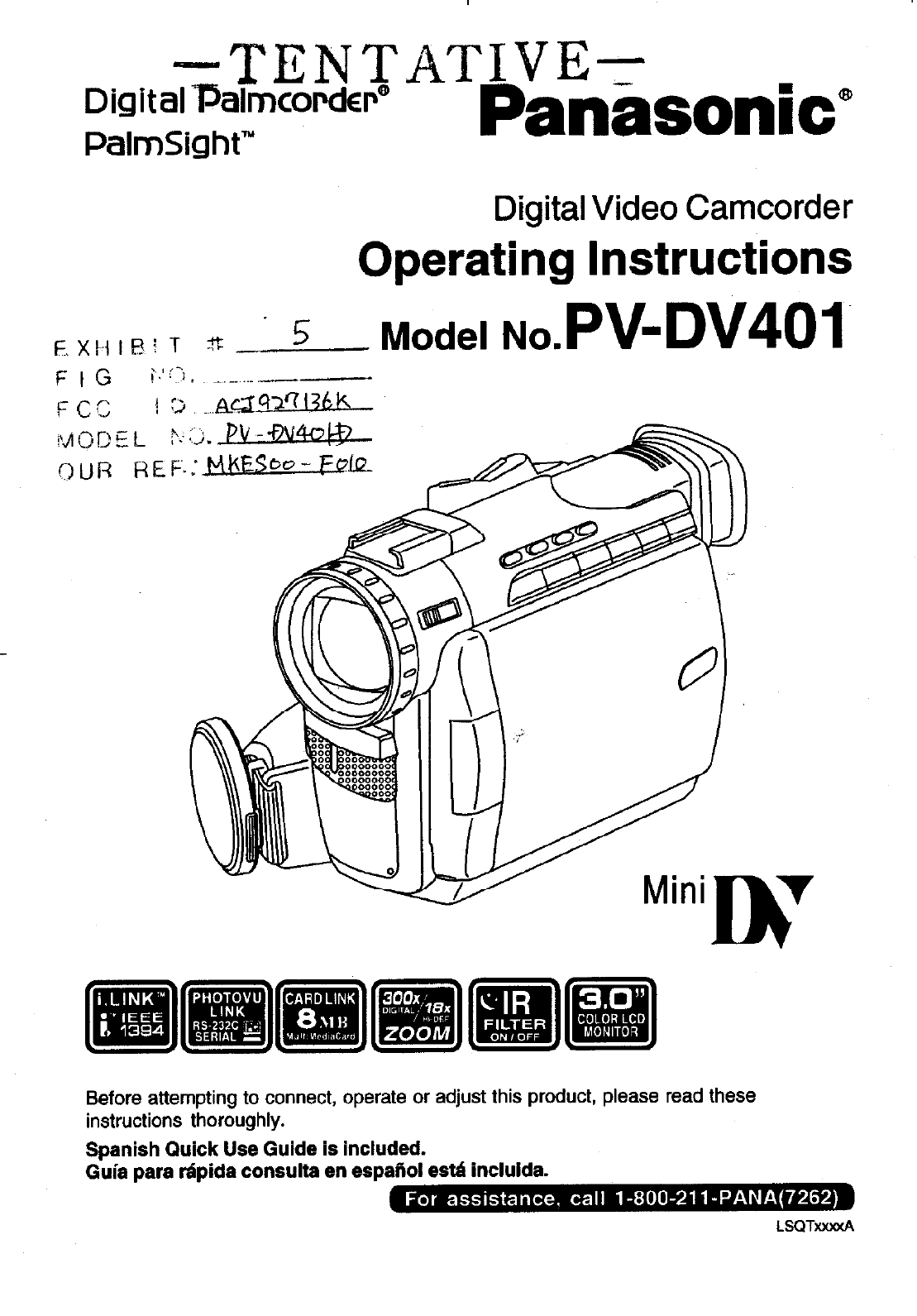 Panasonic of North America 927136K Digital Video Camera User Manual