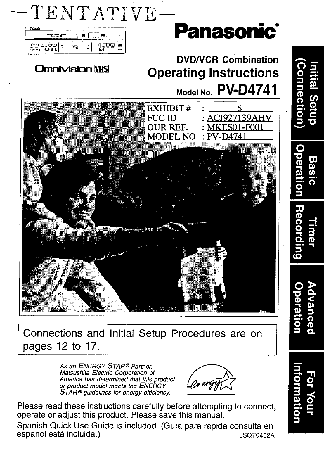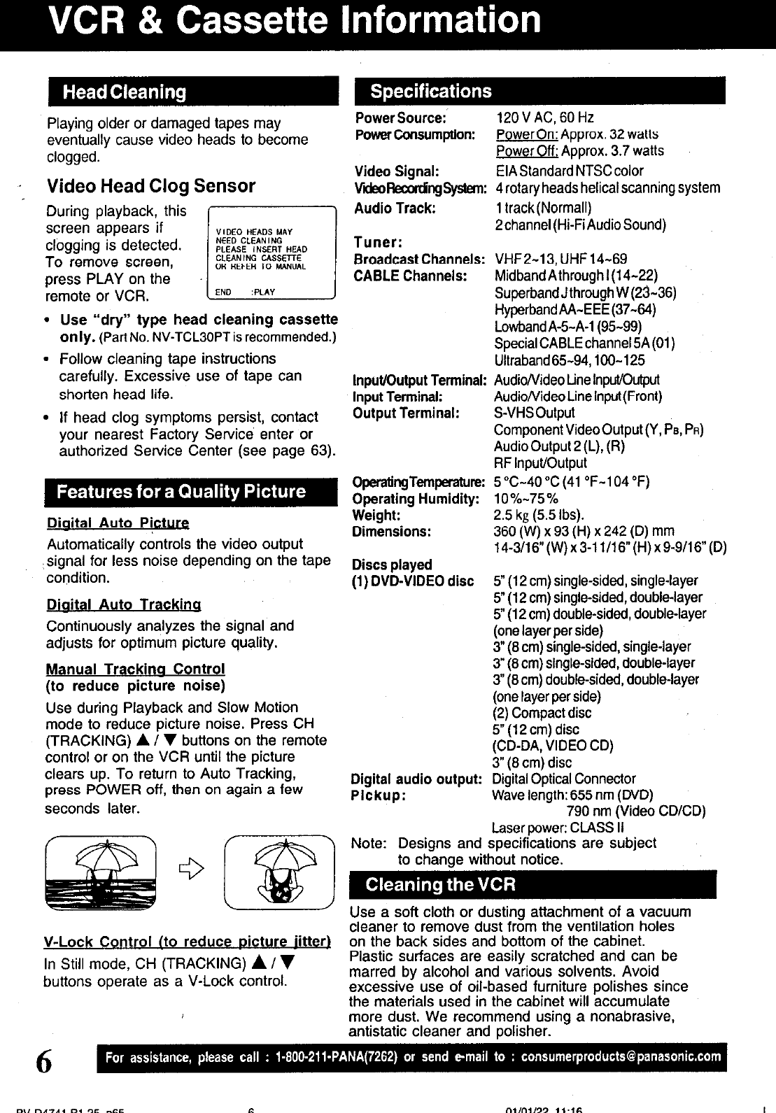 Panasonic of North America 927139AHV VCR with DVD Player User Manual
