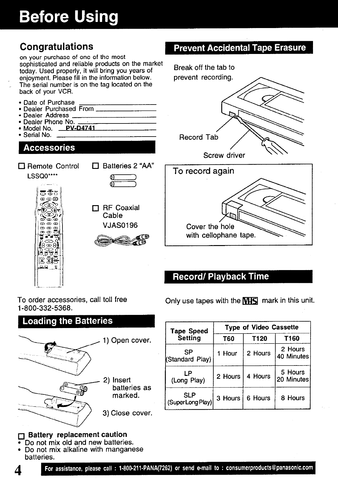 Panasonic Corporation of North America VCR with DVD Player Users Manual