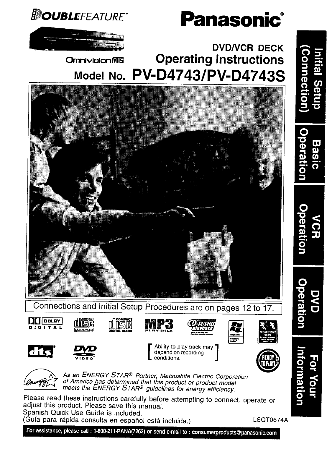 Panasonic of North America 927146AHV Video Cassette Recorder with DVD Player User Manual PV VS4743