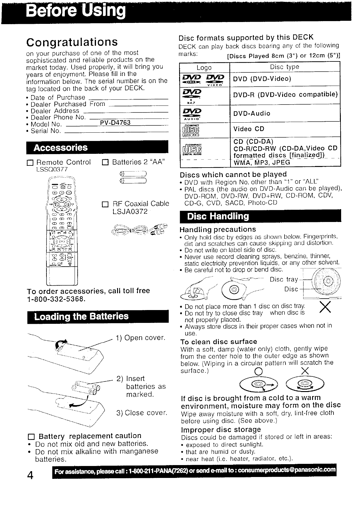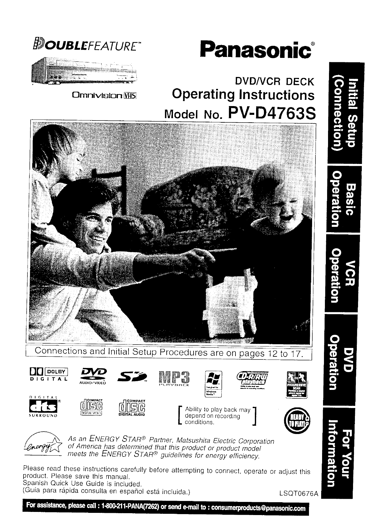 Panasonic of North America 927147AHV VCR With DVD Player User Manual PV VS4763