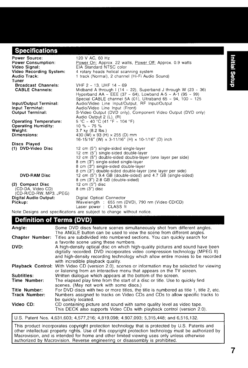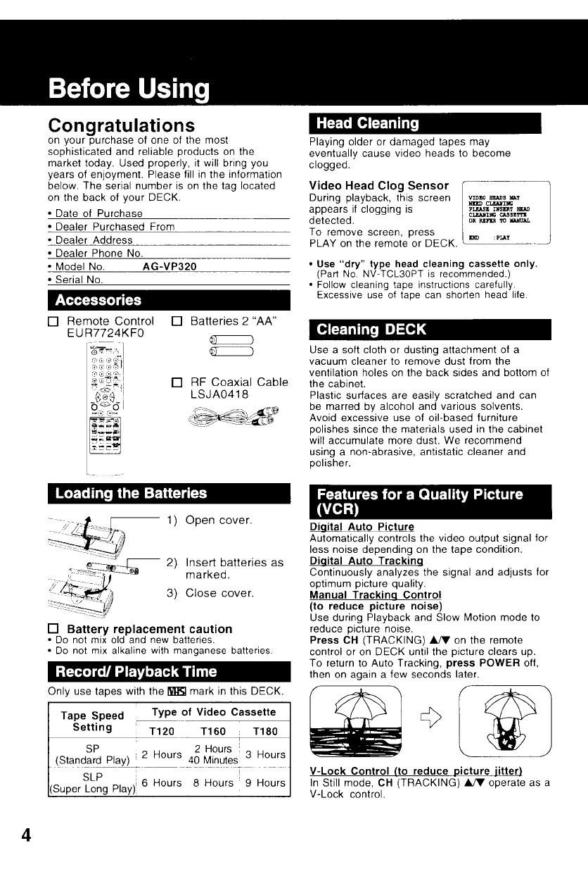 Panasonic of North America 927149AHVI DVD/VCR Deck User Manual