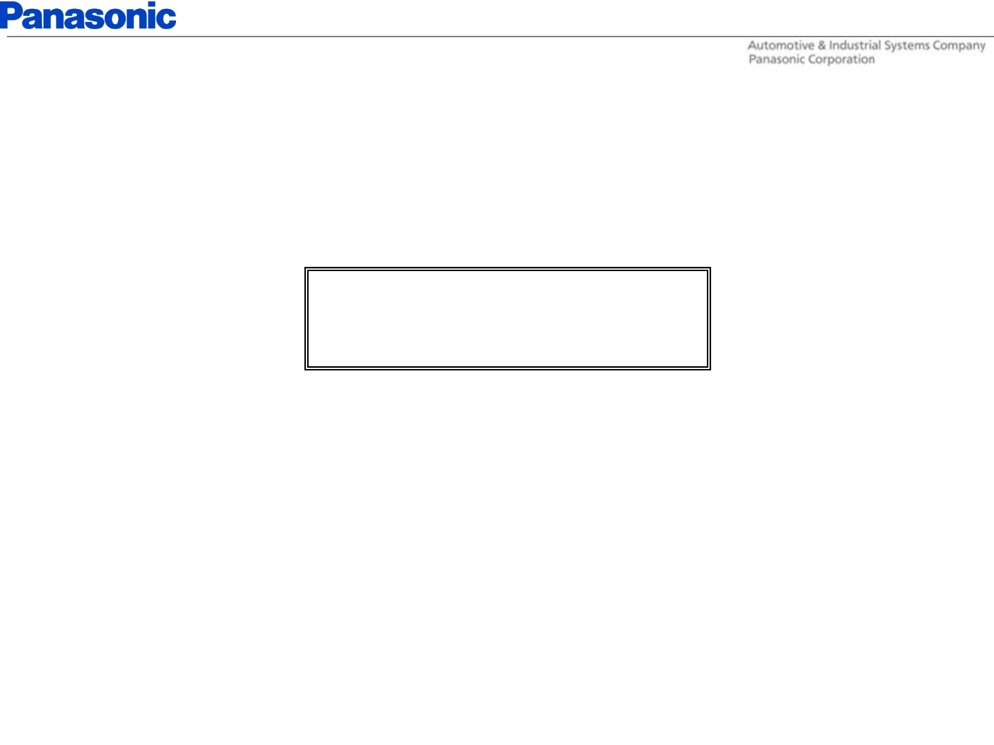Panasonic Corporation of North America SMART FOB Short Term Confidential FOB