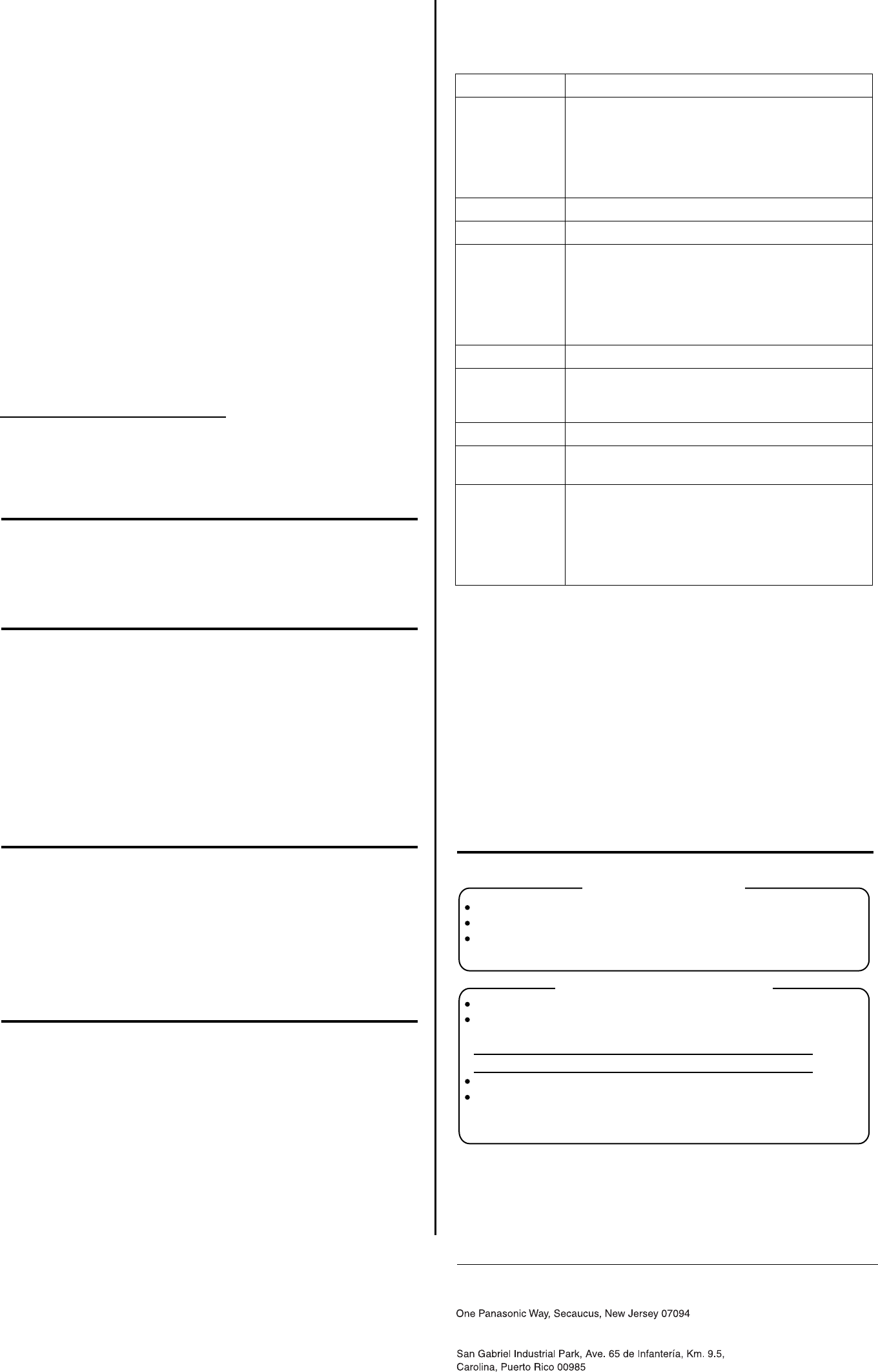 Do not send your unit to the Panasonic Consumer Electronics Company