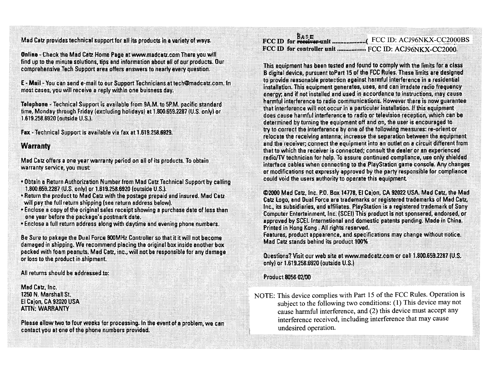 Panasonic of North America 96NKX-CC2000BS 900 MHz Base Unit for Play Station User Manual Exhibit H