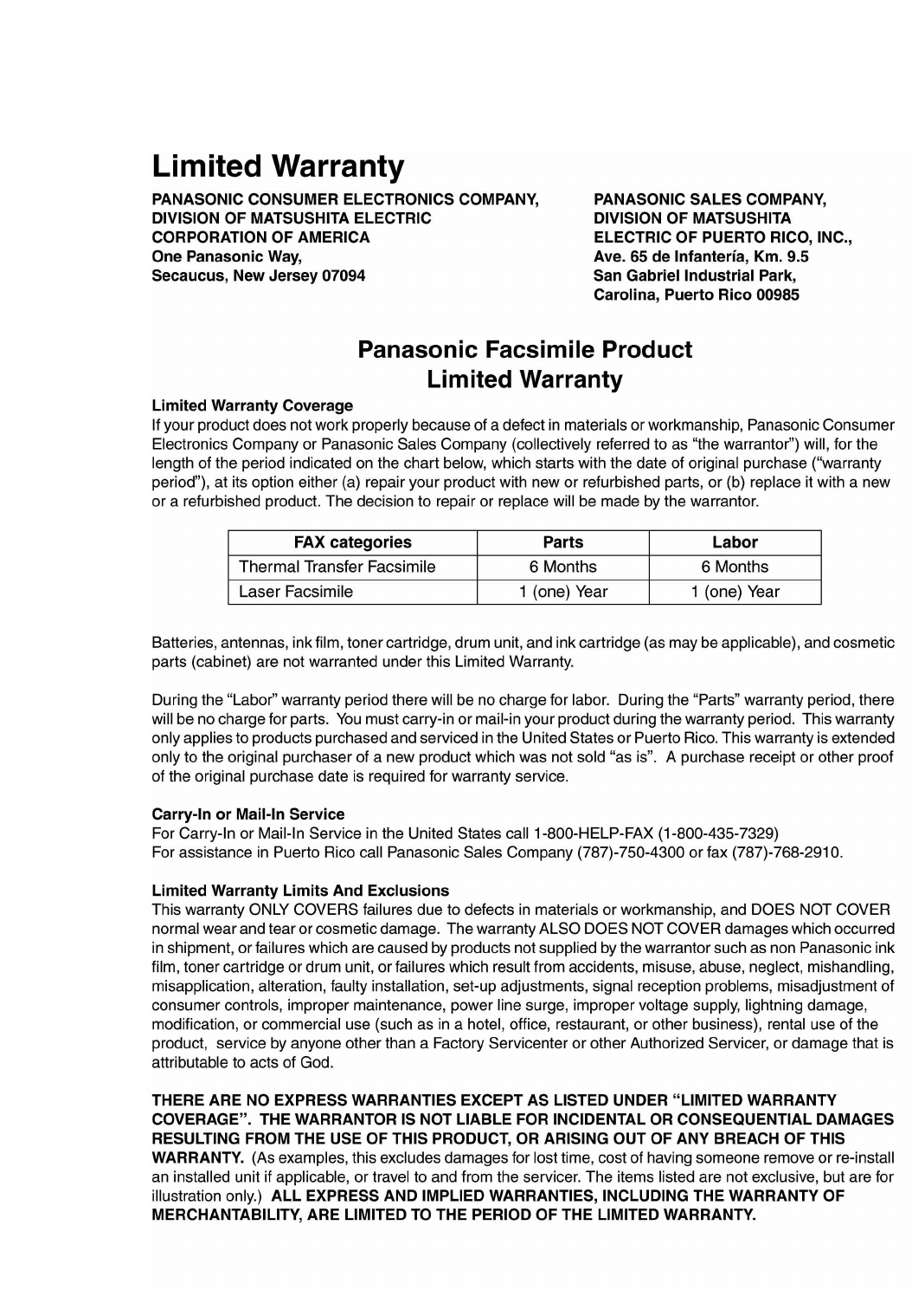 Panasonic Corporation of North America Facsimile Machine users manual
