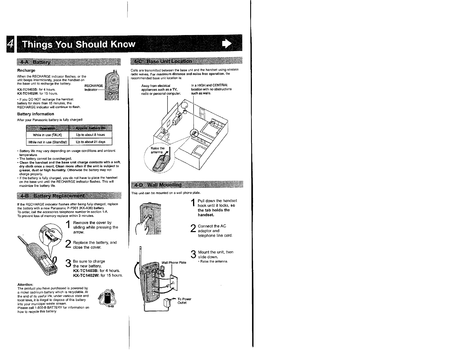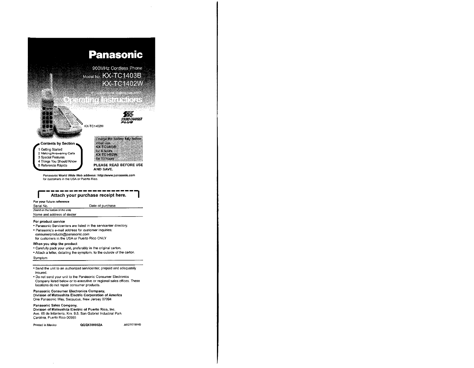 Panasonic of North America 96NKX-TC1403 900MHz Cordless Telephone User Manual