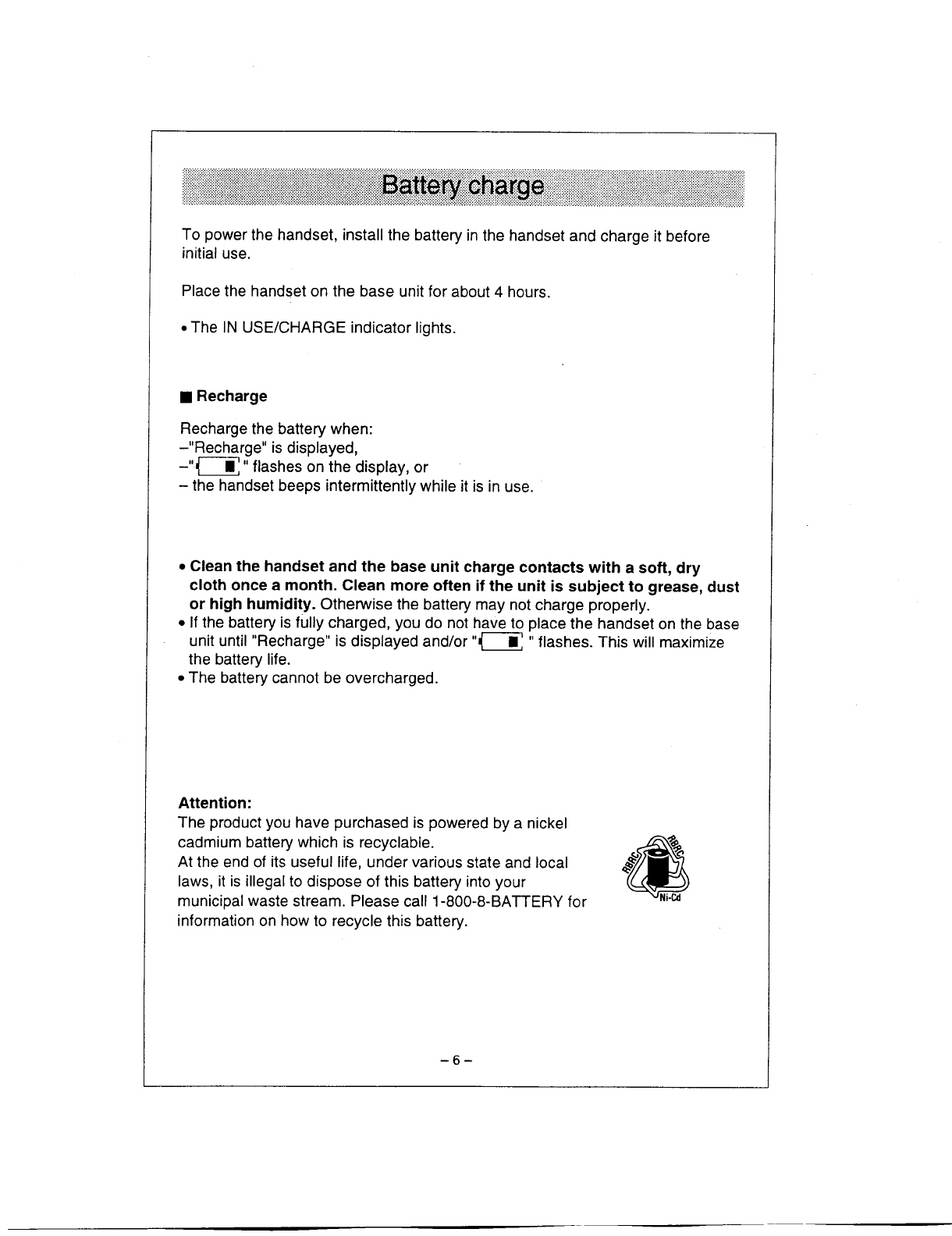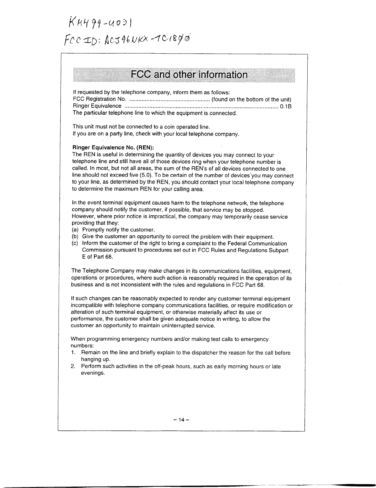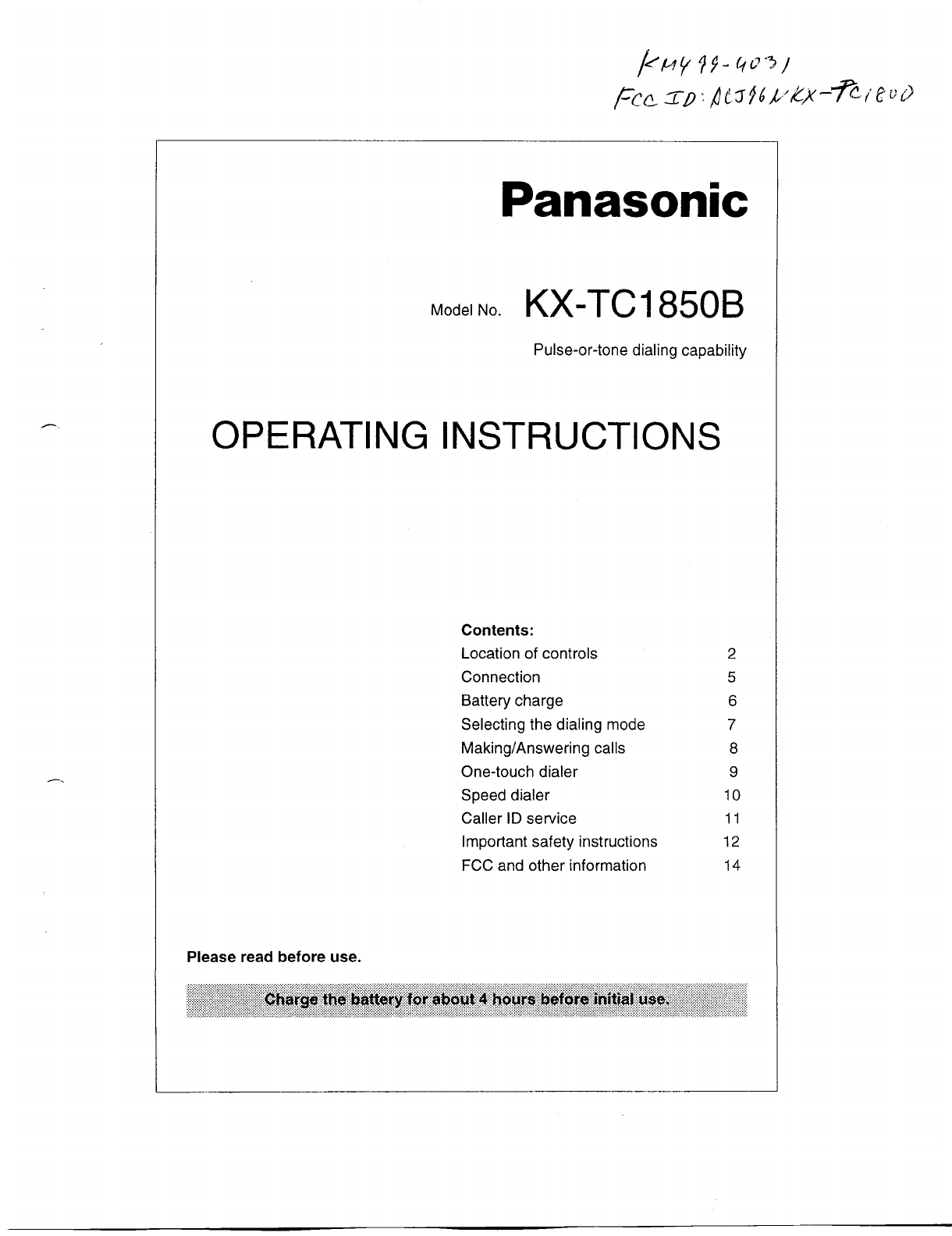 Panasonic of North America 96NKX-TC1800 Cordless Phone User Manual