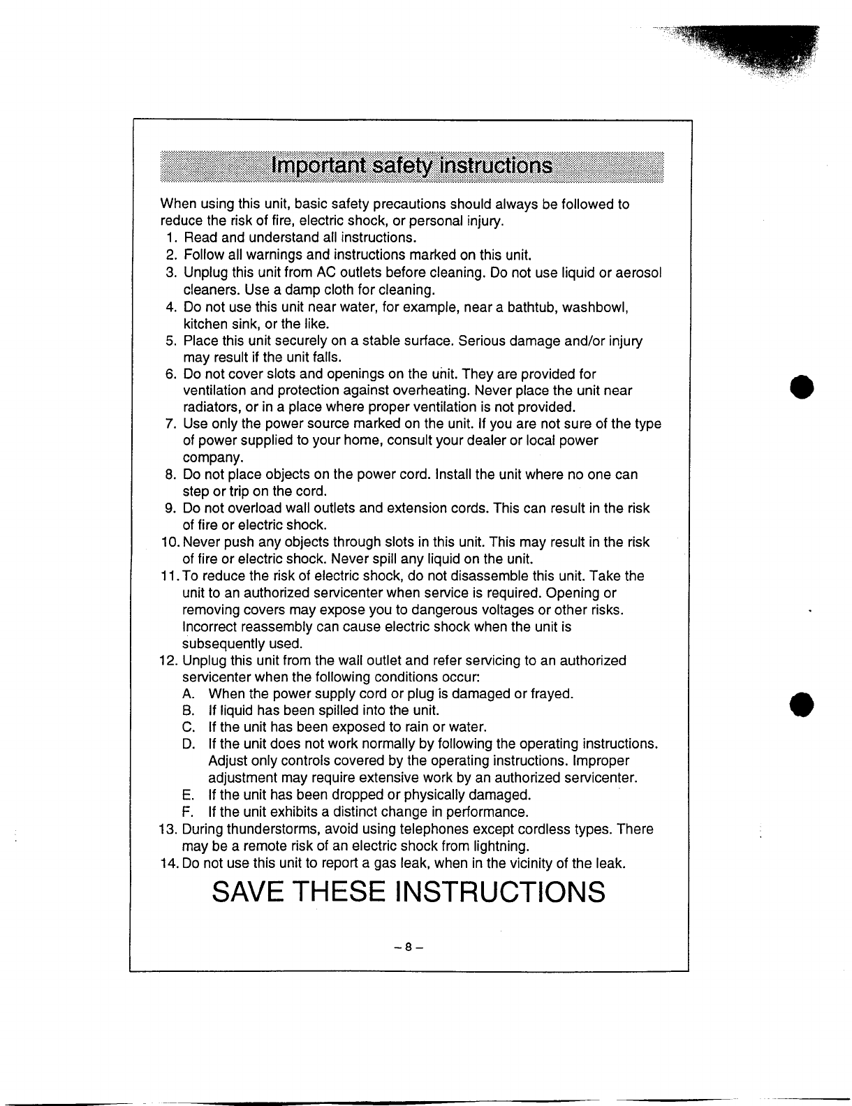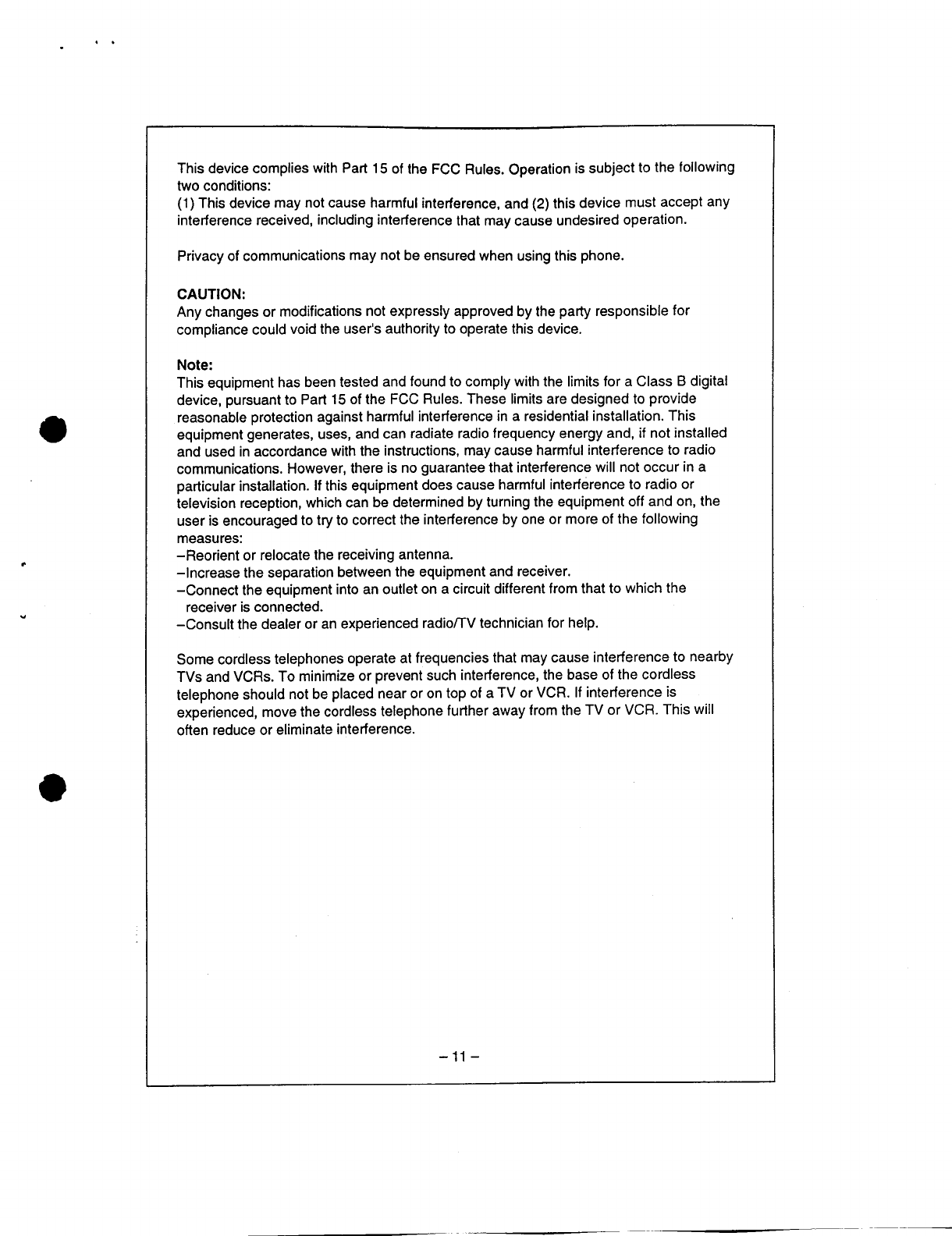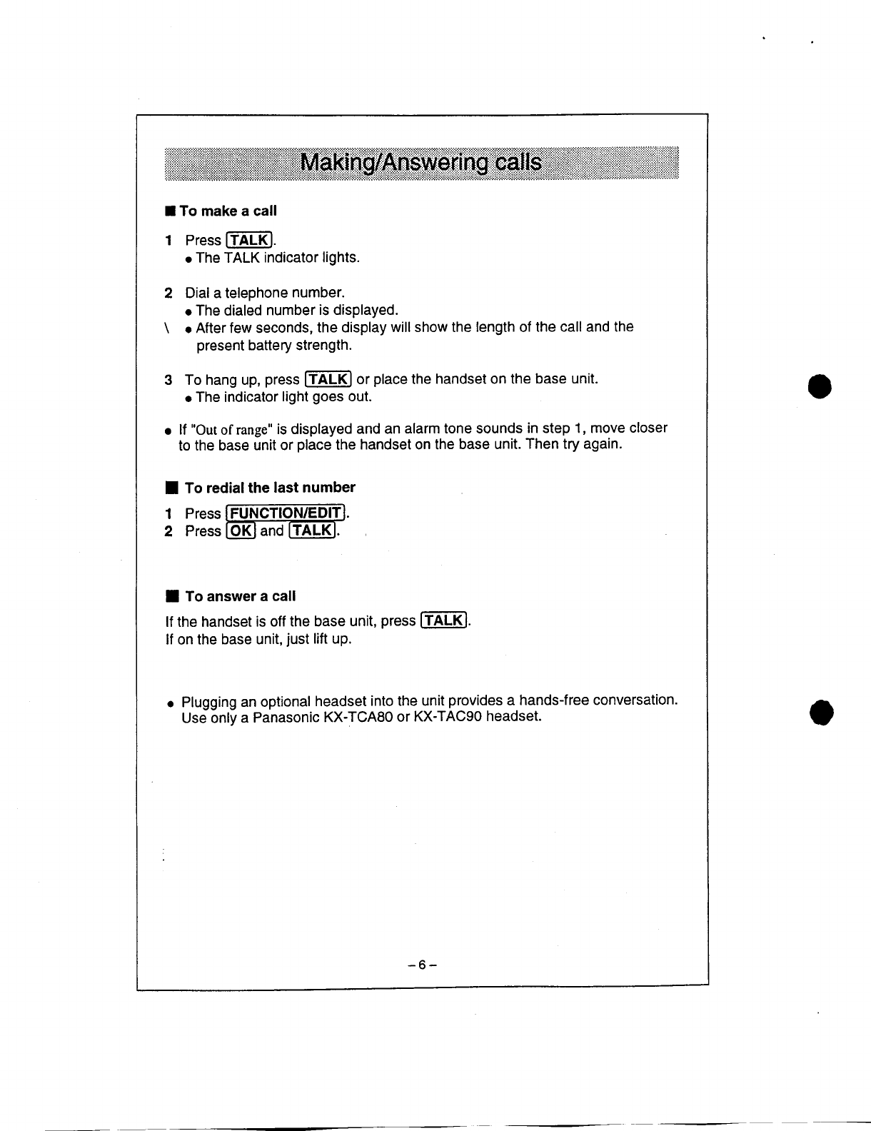 Panasonic Corporation of North America Cordless Phone Base Unit Users Manual