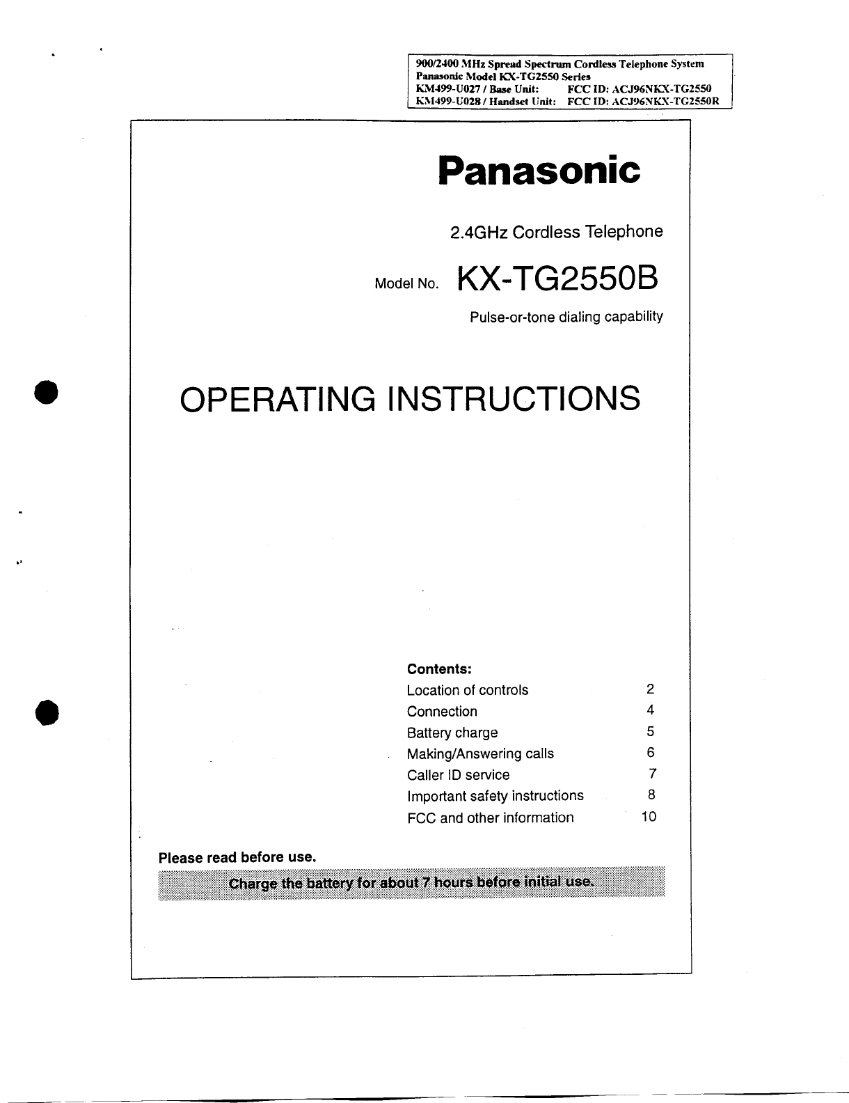 Panasonic of North America 96NKX-TG2550R User Manual