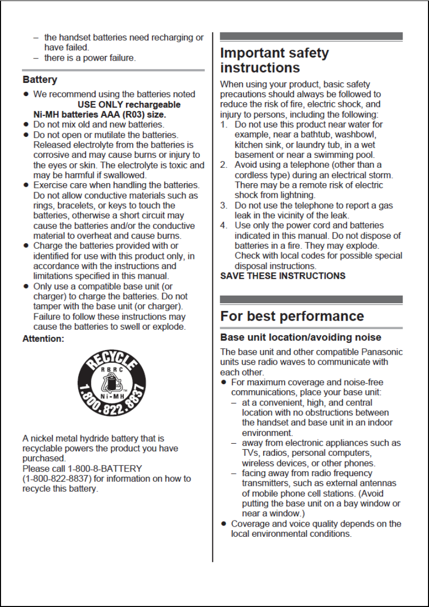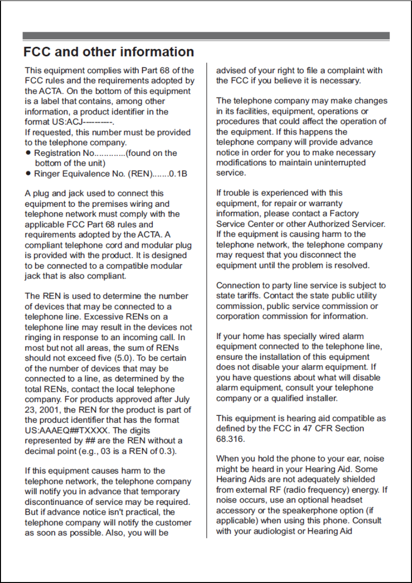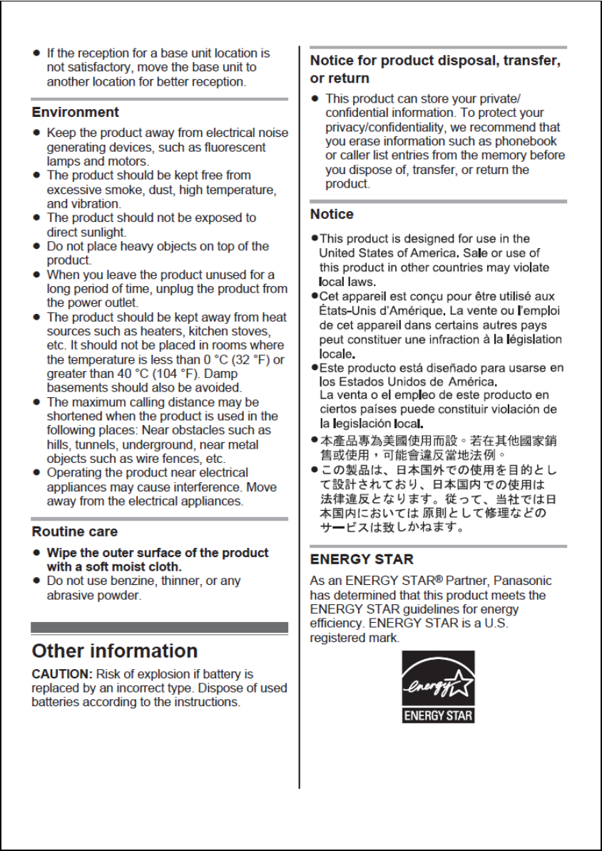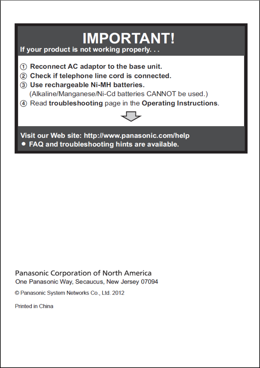 Panasonic of North America 96NKX-TG4221 DECT 6.0 Base User Manual For TA manual TG422xUSA