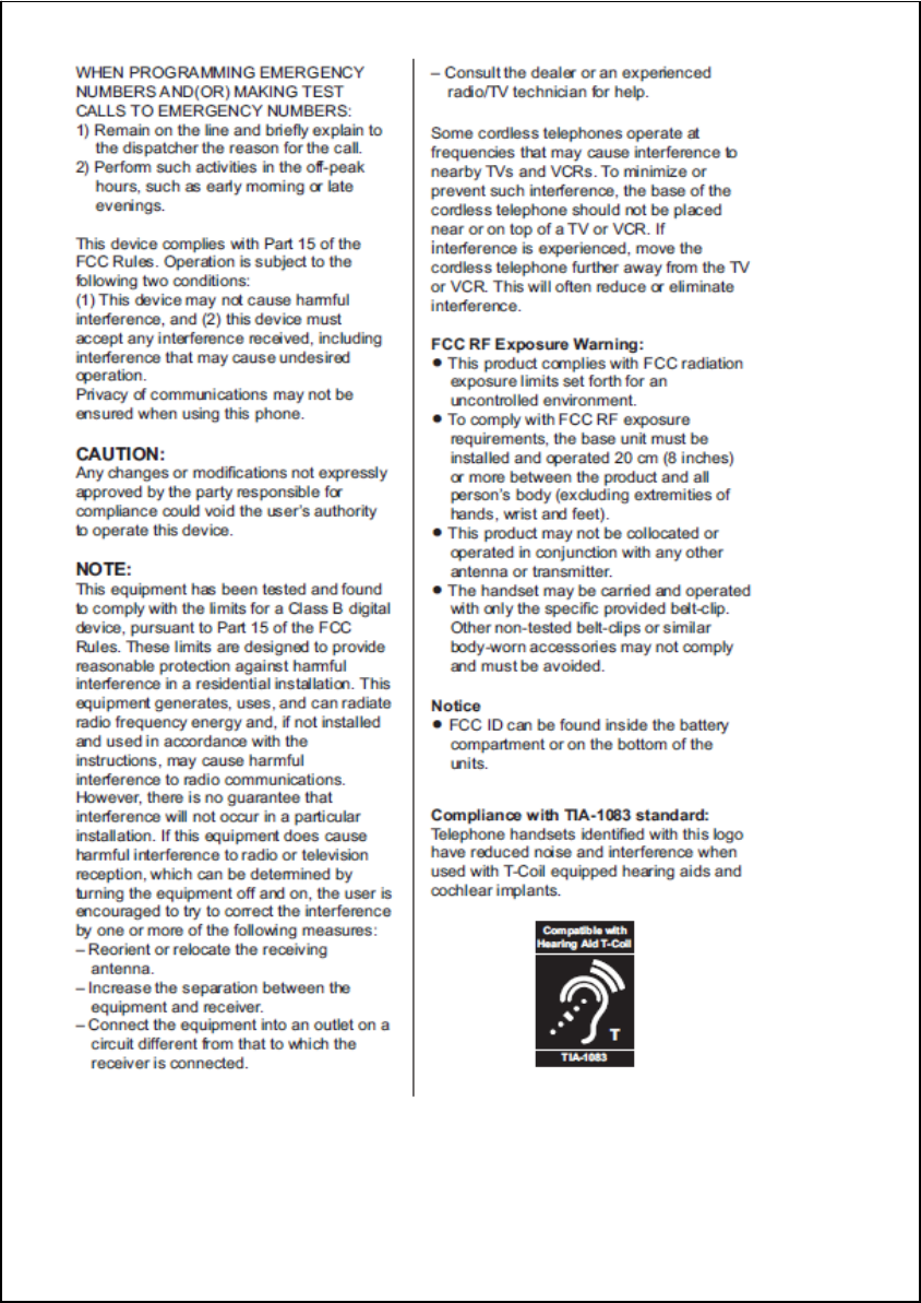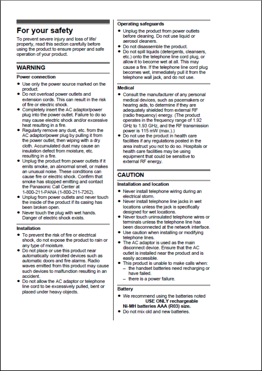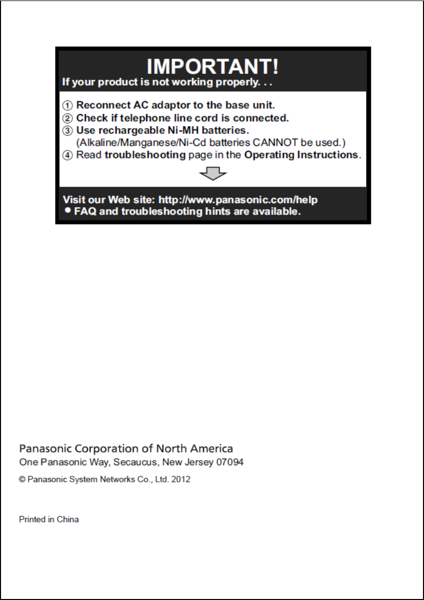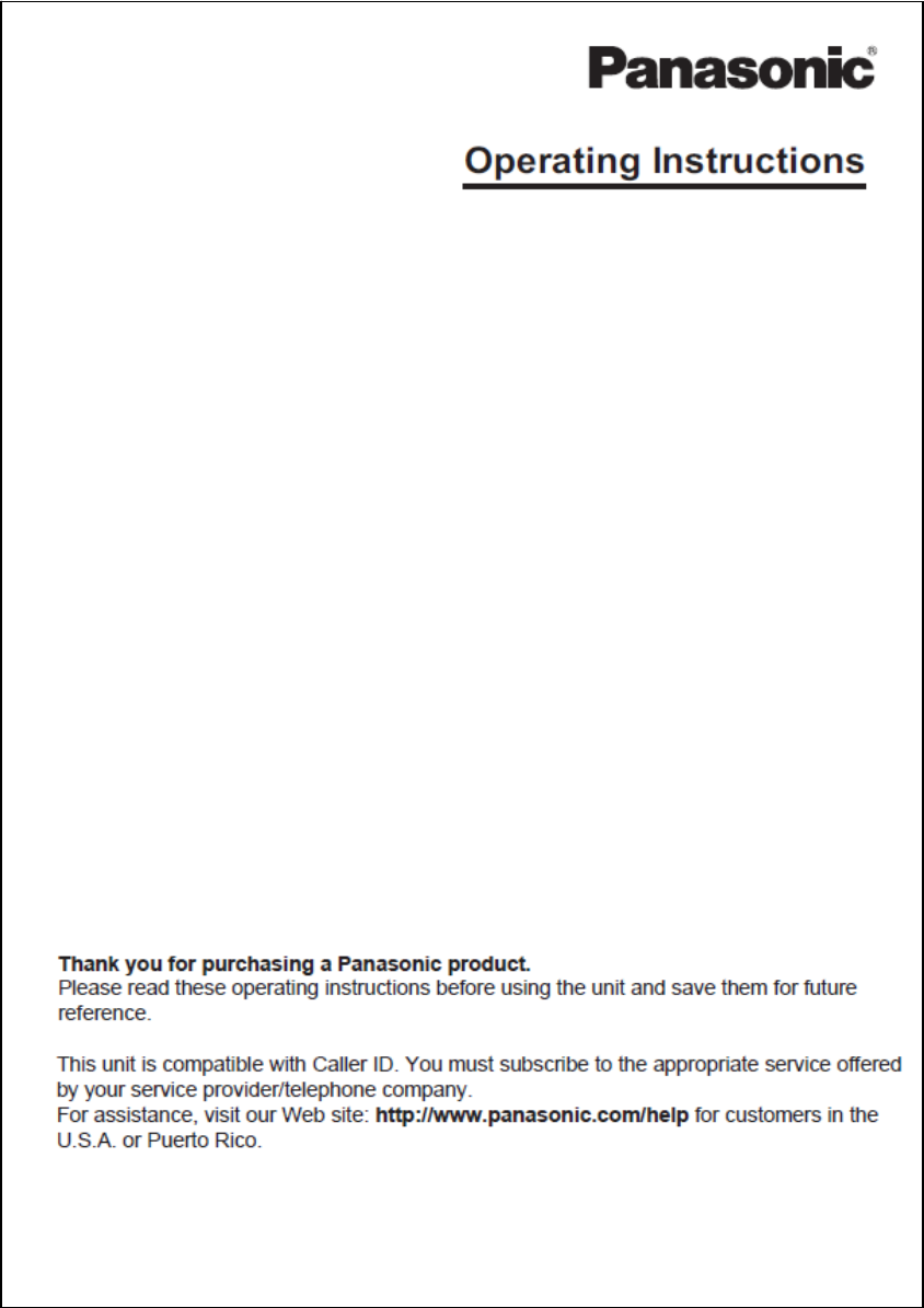 Panasonic Corporation of North America DECT 6.0 Base Users Manual