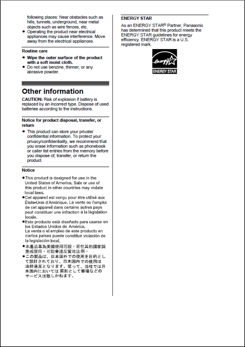 Panasonic of North America 96NKX-TG7871 DECT 6.0 Base User Manual