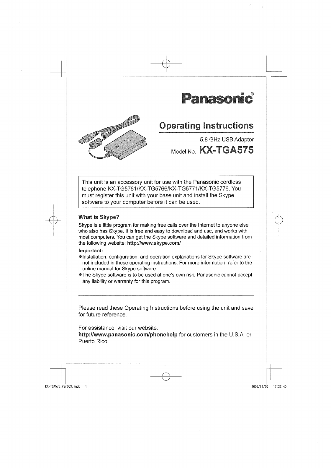 Panasonic Corporation of North America Wireless USB Adaptor KX TGA575 Ver003 indd