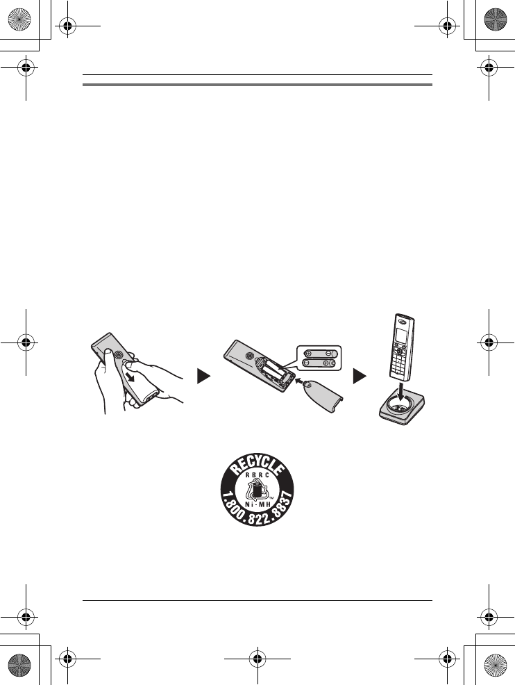 2Insert the batteries negative (T) end first. Close the handset cover.